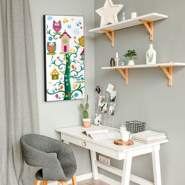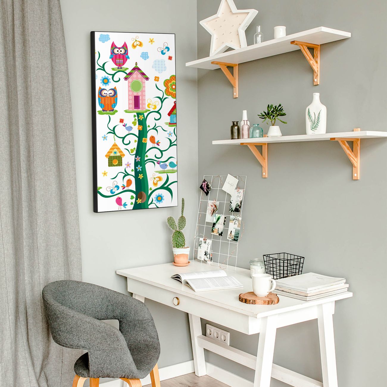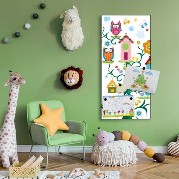 FUNKTION:  Die banjado Magnettafel mit Motiv Eulenfamilie Motiv bringt Ordnung in Ihr Zettelchaos. Fotos, Termine, Notizen oder Rezepte lassen Sich hier stilvoll mit Magneten ordnen, Sie behalten alles im Blick. An der Design Magnettafel halten alle handesüblichen Magnete. DESIGN:  Die magnetische Pinnwand mit dem Motiv Motiv Eulenfamilie ist ein eleganter Begleiter im Alltag. Mit dieser Memotafel aus Metall haben Sie auch ohne Notizen und Magnete ein schönes Dekoelement. Das Format bietet Ihnen ausreichend Platz um alle wichtigen Informationen im Blick zu behalten. DETAILS:  Die Magnettafel besteht aus silber-grau, weiß oder schwarzlackiertem Stahl. Sie hat eine Größe von 37 x 78 x 2cm. Es befinden sich auf der Rückseite vorgefertigte Aufhängungen die eine schnelle und unkomplizierte Anbringung ermöglichen. Das Motiv ist mit einem seidenmatten Laminat versehen und schützt so zusätzlich vor Kratzern. NUTZEN:  Sie können dieses Memoboard groß als Wandbild nutzen, es halten alle handelsüblichen Magneten daran. Die Pinnwand ist mit einem feuchten Lappen oder Schwamm abwischbar. Sie finden bei uns eine große Auswahl an passenden Magneten. BANJADO:  Wir sind ein kleines Team aus dem Herzen von Sachsen. Wir fertigen alle Artikel von Hand für Sie an, Sie erhalten keine preiswerte Importware. Auf Wunsch können Sie auch Ihr eigenes Foto auf die Magnettafel aufbringen, schreiben Sie uns an. Herzlichst, Ihr banjado-Team
