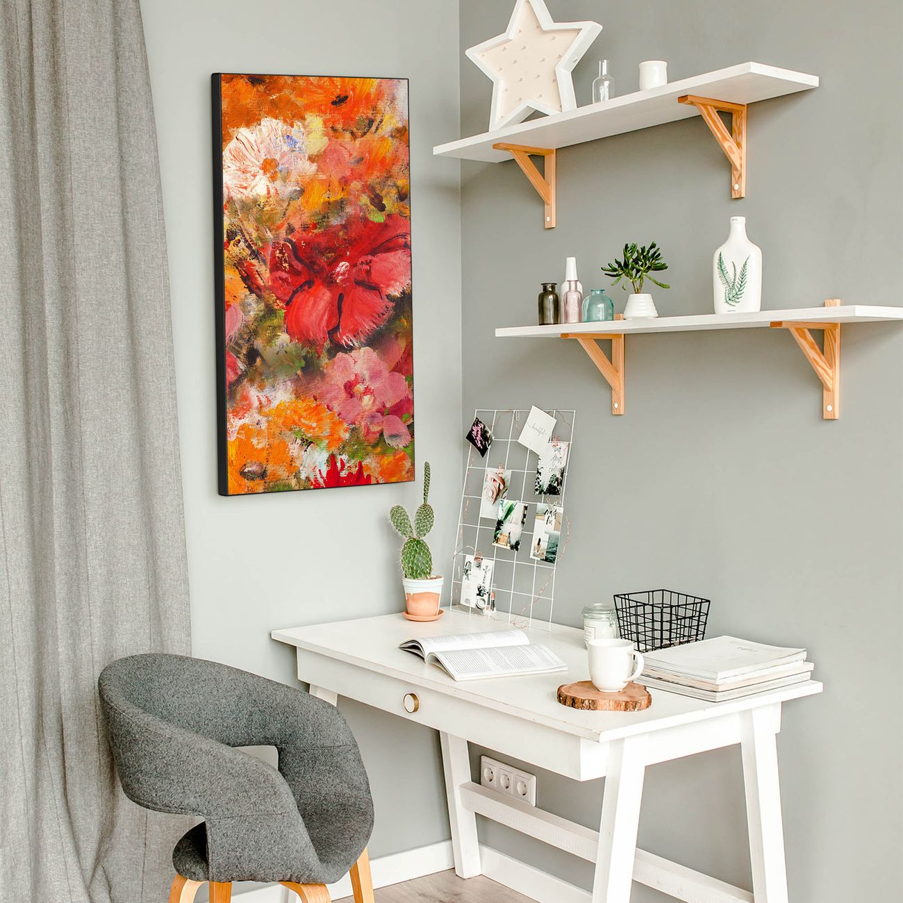 FUNKTION:  Die banjado Magnettafel mit Motiv Fallende Blumen Motiv bringt Ordnung in Ihr Zettelchaos. Fotos, Termine, Notizen oder Rezepte lassen Sich hier stilvoll mit Magneten ordnen, Sie behalten alles im Blick. An der Design Magnettafel halten alle handesüblichen Magnete. DESIGN:  Die magnetische Pinnwand mit dem Motiv Motiv Fallende Blumen ist ein eleganter Begleiter im Alltag. Mit dieser Memotafel aus Metall haben Sie auch ohne Notizen und Magnete ein schönes Dekoelement. Das Format bietet Ihnen ausreichend Platz um alle wichtigen Informationen im Blick zu behalten. DETAILS:  Die Magnettafel besteht aus silber-grau, weiß oder schwarzlackiertem Stahl. Sie hat eine Größe von 37 x 78 x 2cm. Es befinden sich auf der Rückseite vorgefertigte Aufhängungen die eine schnelle und unkomplizierte Anbringung ermöglichen. Das Motiv ist mit einem seidenmatten Laminat versehen und schützt so zusätzlich vor Kratzern. NUTZEN:  Sie können dieses Memoboard groß als Wandbild nutzen, es halten alle handelsüblichen Magneten daran. Die Pinnwand ist mit einem feuchten Lappen oder Schwamm abwischbar. Sie finden bei uns eine große Auswahl an passenden Magneten. BANJADO:  Wir sind ein kleines Team aus dem Herzen von Sachsen. Wir fertigen alle Artikel von Hand für Sie an, Sie erhalten keine preiswerte Importware. Auf Wunsch können Sie auch Ihr eigenes Foto auf die Magnettafel aufbringen, schreiben Sie uns an. Herzlichst, Ihr banjado-Team