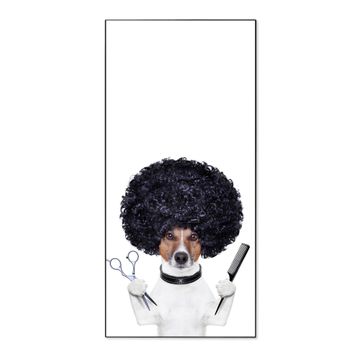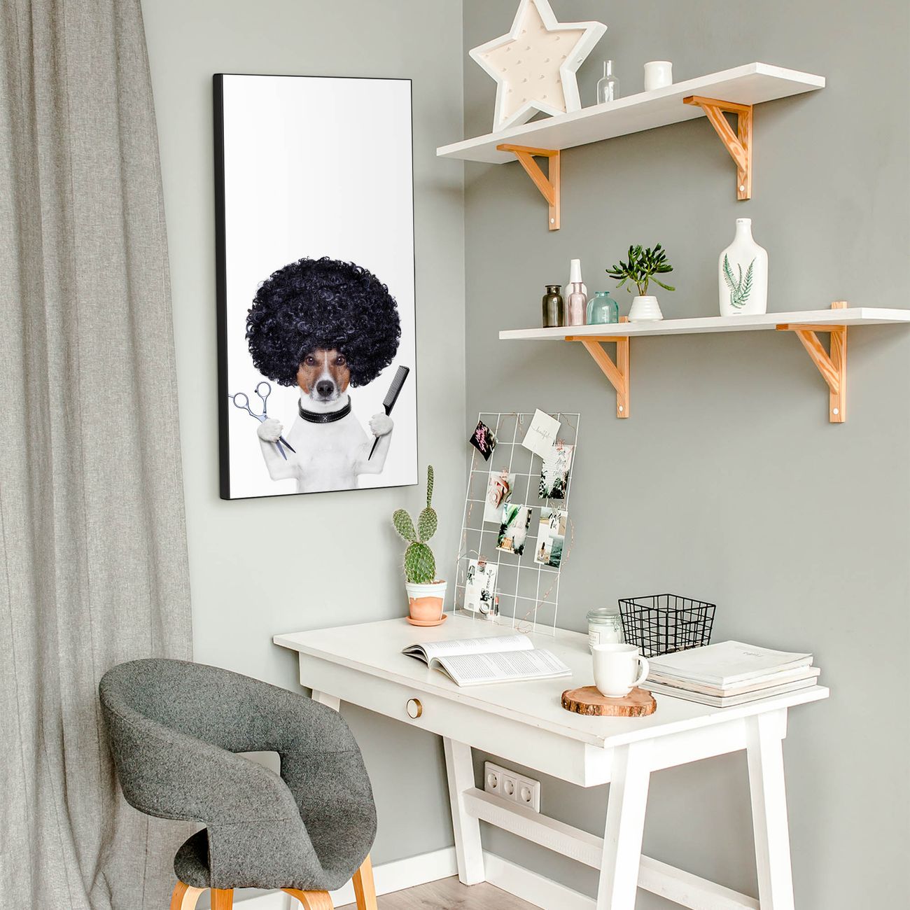 FUNKTION:  Die banjado Magnettafel mit Motiv Friseur Jack Russel Motiv bringt Ordnung in Ihr Zettelchaos. Fotos, Termine, Notizen oder Rezepte lassen Sich hier stilvoll mit Magneten ordnen, Sie behalten alles im Blick. An der Design Magnettafel halten alle handesüblichen Magnete. DESIGN:  Die magnetische Pinnwand mit dem Motiv Motiv Friseur Jack Russel ist ein eleganter Begleiter im Alltag. Mit dieser Memotafel aus Metall haben Sie auch ohne Notizen und Magnete ein schönes Dekoelement. Das Format bietet Ihnen ausreichend Platz um alle wichtigen Informationen im Blick zu behalten. DETAILS:  Die Magnettafel besteht aus silber-grau, weiß oder schwarzlackiertem Stahl. Sie hat eine Größe von 37 x 78 x 2cm. Es befinden sich auf der Rückseite vorgefertigte Aufhängungen die eine schnelle und unkomplizierte Anbringung ermöglichen. Das Motiv ist mit einem seidenmatten Laminat versehen und schützt so zusätzlich vor Kratzern. NUTZEN:  Sie können dieses Memoboard groß als Wandbild nutzen, es halten alle handelsüblichen Magneten daran. Die Pinnwand ist mit einem feuchten Lappen oder Schwamm abwischbar. Sie finden bei uns eine große Auswahl an passenden Magneten. BANJADO:  Wir sind ein kleines Team aus dem Herzen von Sachsen. Wir fertigen alle Artikel von Hand für Sie an, Sie erhalten keine preiswerte Importware. Auf Wunsch können Sie auch Ihr eigenes Foto auf die Magnettafel aufbringen, schreiben Sie uns an. Herzlichst, Ihr banjado-Team