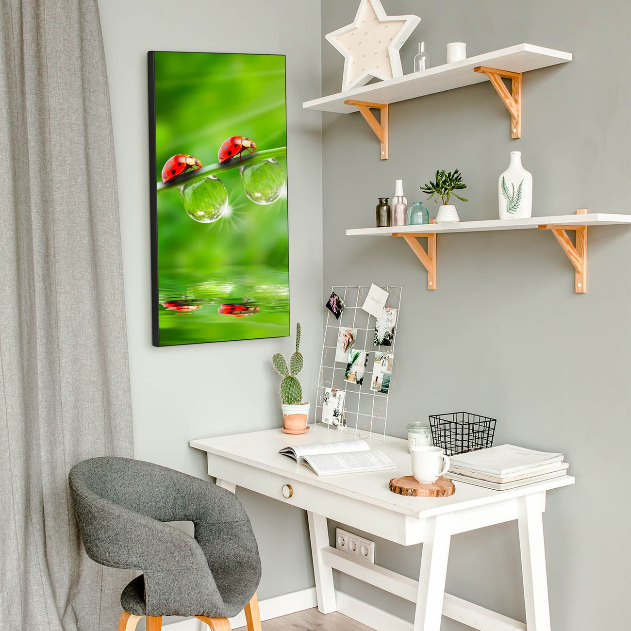 FUNKTION:  Die banjado Magnettafel mit Motiv Für Jeden Einen Motiv bringt Ordnung in Ihr Zettelchaos. Fotos, Termine, Notizen oder Rezepte lassen Sich hier stilvoll mit Magneten ordnen, Sie behalten alles im Blick. An der Design Magnettafel halten alle handesüblichen Magnete. DESIGN:  Die magnetische Pinnwand mit dem Motiv Motiv Für Jeden Einen ist ein eleganter Begleiter im Alltag. Mit dieser Memotafel aus Metall haben Sie auch ohne Notizen und Magnete ein schönes Dekoelement. Das Format bietet Ihnen ausreichend Platz um alle wichtigen Informationen im Blick zu behalten. DETAILS:  Die Magnettafel besteht aus silber-grau, weiß oder schwarzlackiertem Stahl. Sie hat eine Größe von 37 x 78 x 2cm. Es befinden sich auf der Rückseite vorgefertigte Aufhängungen die eine schnelle und unkomplizierte Anbringung ermöglichen. Das Motiv ist mit einem seidenmatten Laminat versehen und schützt so zusätzlich vor Kratzern. NUTZEN:  Sie können dieses Memoboard groß als Wandbild nutzen, es halten alle handelsüblichen Magneten daran. Die Pinnwand ist mit einem feuchten Lappen oder Schwamm abwischbar. Sie finden bei uns eine große Auswahl an passenden Magneten. BANJADO:  Wir sind ein kleines Team aus dem Herzen von Sachsen. Wir fertigen alle Artikel von Hand für Sie an, Sie erhalten keine preiswerte Importware. Auf Wunsch können Sie auch Ihr eigenes Foto auf die Magnettafel aufbringen, schreiben Sie uns an. Herzlichst, Ihr banjado-Team