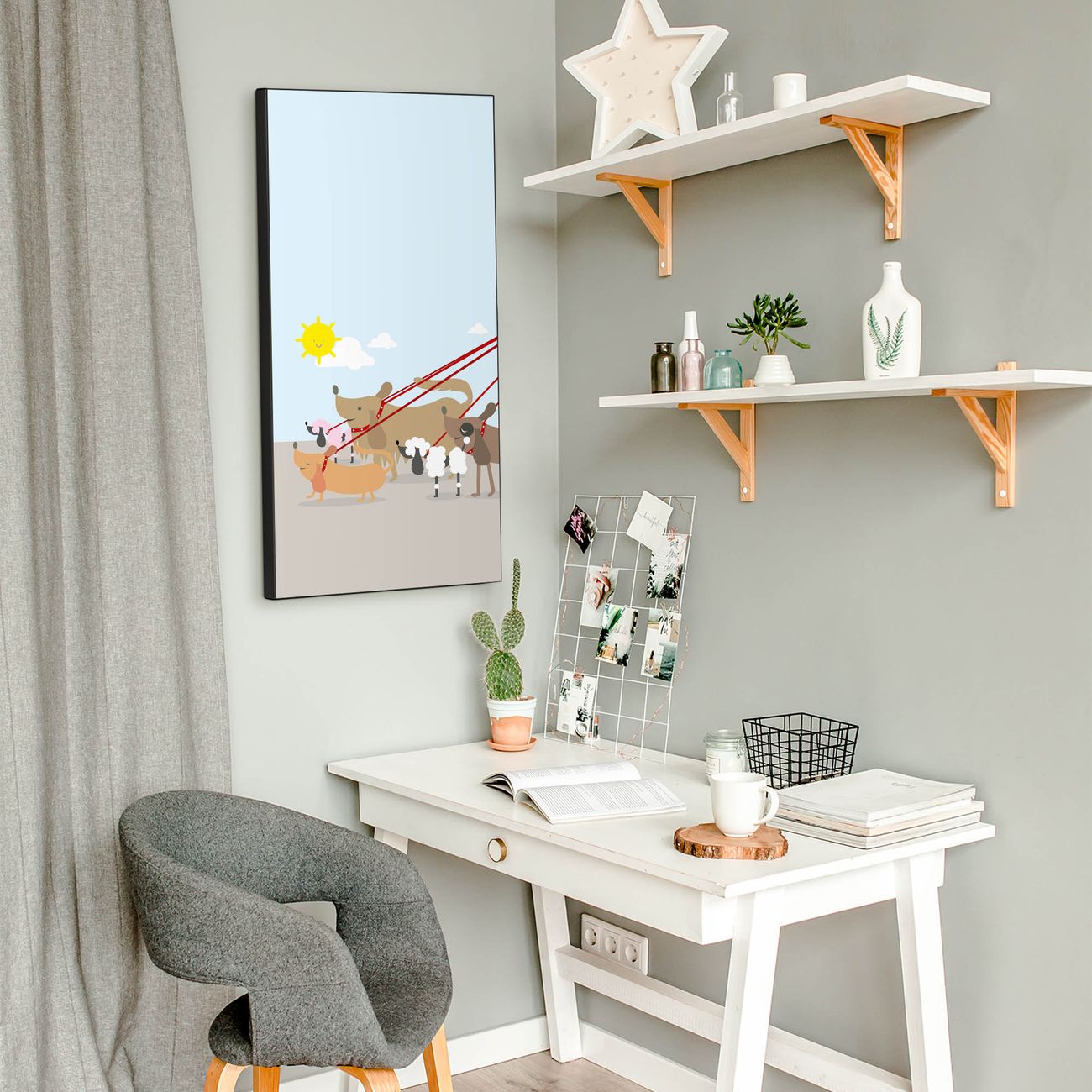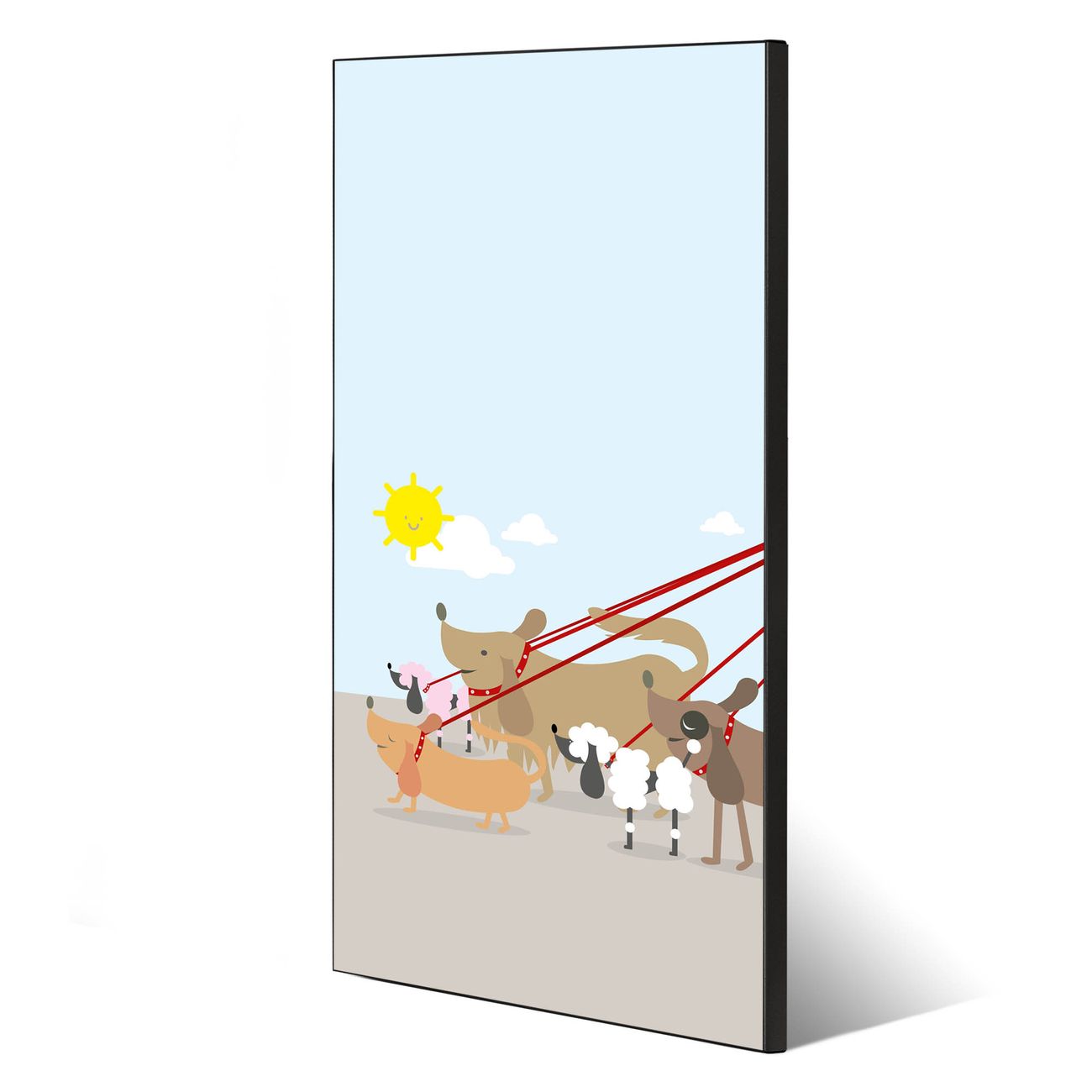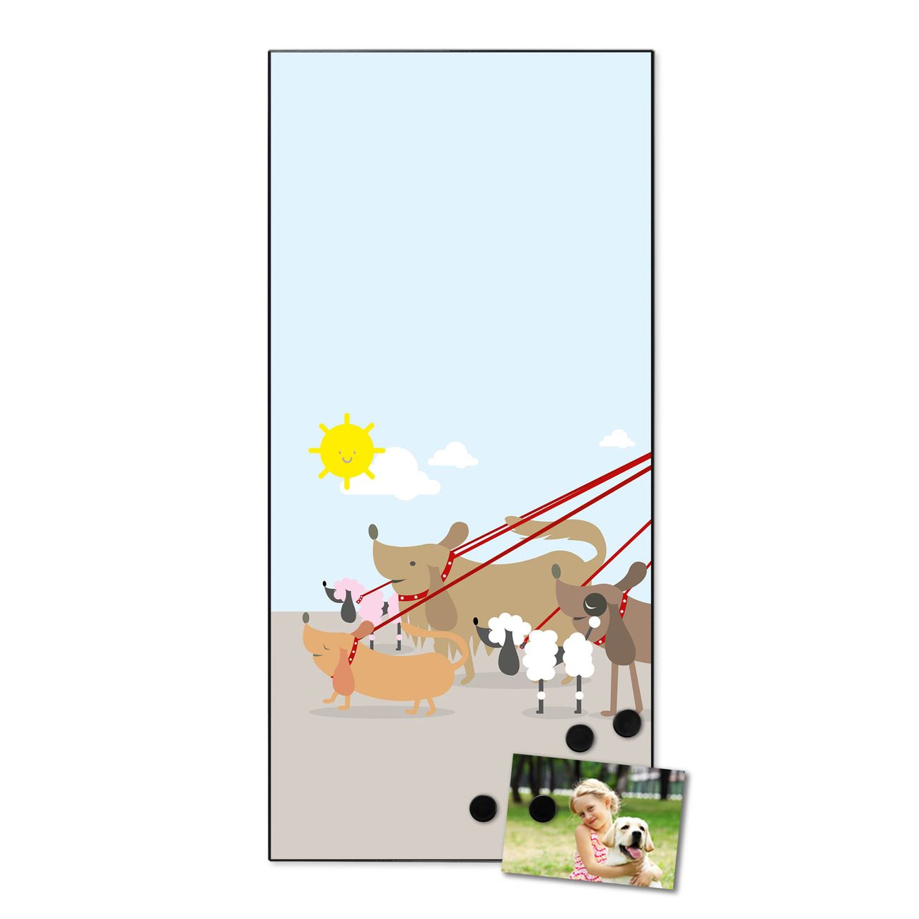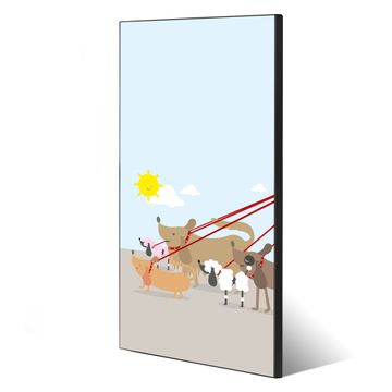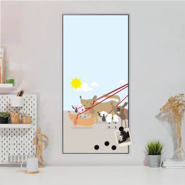 FUNKTION:  Die banjado Magnettafel mit Motiv Gassi Gehen Motiv bringt Ordnung in Ihr Zettelchaos. Fotos, Termine, Notizen oder Rezepte lassen Sich hier stilvoll mit Magneten ordnen, Sie behalten alles im Blick. An der Design Magnettafel halten alle handesüblichen Magnete. DESIGN:  Die magnetische Pinnwand mit dem Motiv Motiv Gassi Gehen ist ein eleganter Begleiter im Alltag. Mit dieser Memotafel aus Metall haben Sie auch ohne Notizen und Magnete ein schönes Dekoelement. Das Format bietet Ihnen ausreichend Platz um alle wichtigen Informationen im Blick zu behalten. DETAILS:  Die Magnettafel besteht aus silber-grau, weiß oder schwarzlackiertem Stahl. Sie hat eine Größe von 37 x 78 x 2cm. Es befinden sich auf der Rückseite vorgefertigte Aufhängungen die eine schnelle und unkomplizierte Anbringung ermöglichen. Das Motiv ist mit einem seidenmatten Laminat versehen und schützt so zusätzlich vor Kratzern. NUTZEN:  Sie können dieses Memoboard groß als Wandbild nutzen, es halten alle handelsüblichen Magneten daran. Die Pinnwand ist mit einem feuchten Lappen oder Schwamm abwischbar. Sie finden bei uns eine große Auswahl an passenden Magneten. BANJADO:  Wir sind ein kleines Team aus dem Herzen von Sachsen. Wir fertigen alle Artikel von Hand für Sie an, Sie erhalten keine preiswerte Importware. Auf Wunsch können Sie auch Ihr eigenes Foto auf die Magnettafel aufbringen, schreiben Sie uns an. Herzlichst, Ihr banjado-Team