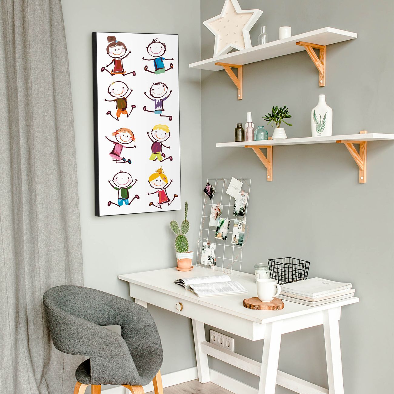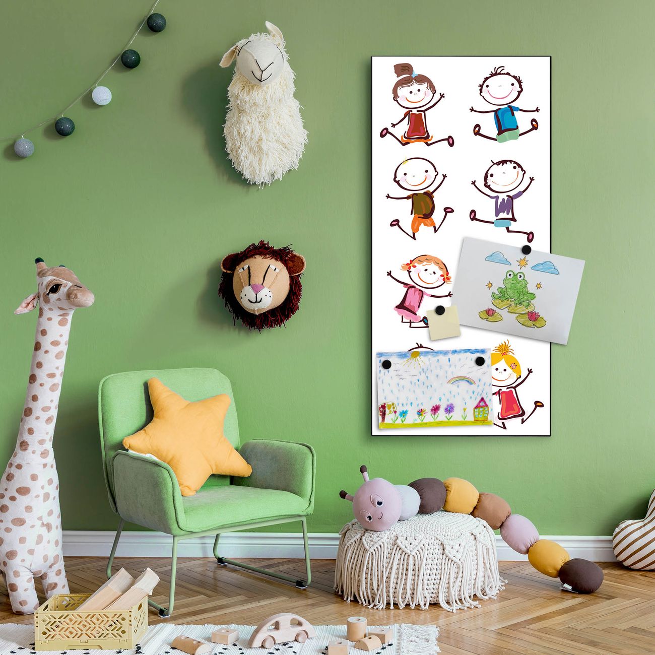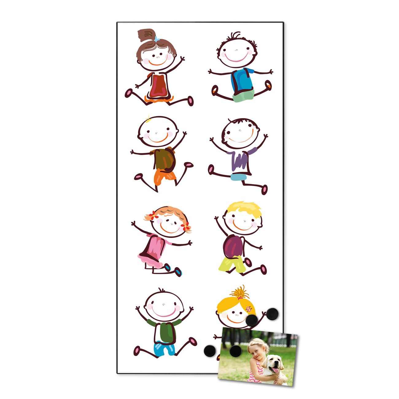 FUNKTION:  Die banjado Magnettafel mit Motiv Happy Kids Motiv bringt Ordnung in Ihr Zettelchaos. Fotos, Termine, Notizen oder Rezepte lassen Sich hier stilvoll mit Magneten ordnen, Sie behalten alles im Blick. An der Design Magnettafel halten alle handesüblichen Magnete. DESIGN:  Die magnetische Pinnwand mit dem Motiv Motiv Happy Kids ist ein eleganter Begleiter im Alltag. Mit dieser Memotafel aus Metall haben Sie auch ohne Notizen und Magnete ein schönes Dekoelement. Das Format bietet Ihnen ausreichend Platz um alle wichtigen Informationen im Blick zu behalten. DETAILS:  Die Magnettafel besteht aus silber-grau, weiß oder schwarzlackiertem Stahl. Sie hat eine Größe von 37 x 78 x 2cm. Es befinden sich auf der Rückseite vorgefertigte Aufhängungen die eine schnelle und unkomplizierte Anbringung ermöglichen. Das Motiv ist mit einem seidenmatten Laminat versehen und schützt so zusätzlich vor Kratzern. NUTZEN:  Sie können dieses Memoboard groß als Wandbild nutzen, es halten alle handelsüblichen Magneten daran. Die Pinnwand ist mit einem feuchten Lappen oder Schwamm abwischbar. Sie finden bei uns eine große Auswahl an passenden Magneten. BANJADO:  Wir sind ein kleines Team aus dem Herzen von Sachsen. Wir fertigen alle Artikel von Hand für Sie an, Sie erhalten keine preiswerte Importware. Auf Wunsch können Sie auch Ihr eigenes Foto auf die Magnettafel aufbringen, schreiben Sie uns an. Herzlichst, Ihr banjado-Team