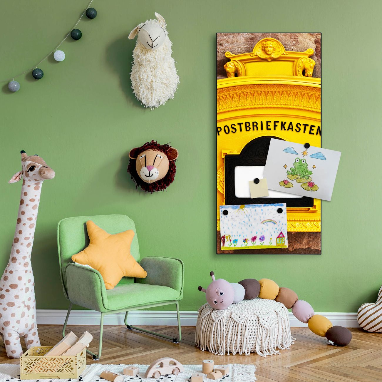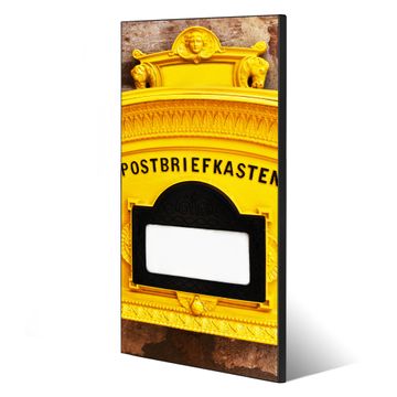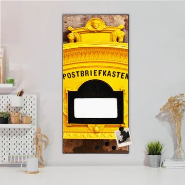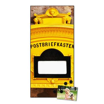FUNKTION:  Die banjado Magnettafel mit Motiv Historischer Postkasten Motiv bringt Ordnung in Ihr Zettelchaos. Fotos, Termine, Notizen oder Rezepte lassen Sich hier stilvoll mit Magneten ordnen, Sie behalten alles im Blick. An der Design Magnettafel halten alle handesüblichen Magnete. DESIGN:  Die magnetische Pinnwand mit dem Motiv Motiv Historischer Postkasten ist ein eleganter Begleiter im Alltag. Mit dieser Memotafel aus Metall haben Sie auch ohne Notizen und Magnete ein schönes Dekoelement. Das Format bietet Ihnen ausreichend Platz um alle wichtigen Informationen im Blick zu behalten. DETAILS:  Die Magnettafel besteht aus silber-grau, weiß oder schwarzlackiertem Stahl. Sie hat eine Größe von 37 x 78 x 2cm. Es befinden sich auf der Rückseite vorgefertigte Aufhängungen die eine schnelle und unkomplizierte Anbringung ermöglichen. Das Motiv ist mit einem seidenmatten Laminat versehen und schützt so zusätzlich vor Kratzern. NUTZEN:  Sie können dieses Memoboard groß als Wandbild nutzen, es halten alle handelsüblichen Magneten daran. Die Pinnwand ist mit einem feuchten Lappen oder Schwamm abwischbar. Sie finden bei uns eine große Auswahl an passenden Magneten. BANJADO:  Wir sind ein kleines Team aus dem Herzen von Sachsen. Wir fertigen alle Artikel von Hand für Sie an, Sie erhalten keine preiswerte Importware. Auf Wunsch können Sie auch Ihr eigenes Foto auf die Magnettafel aufbringen, schreiben Sie uns an. Herzlichst, Ihr banjado-Team