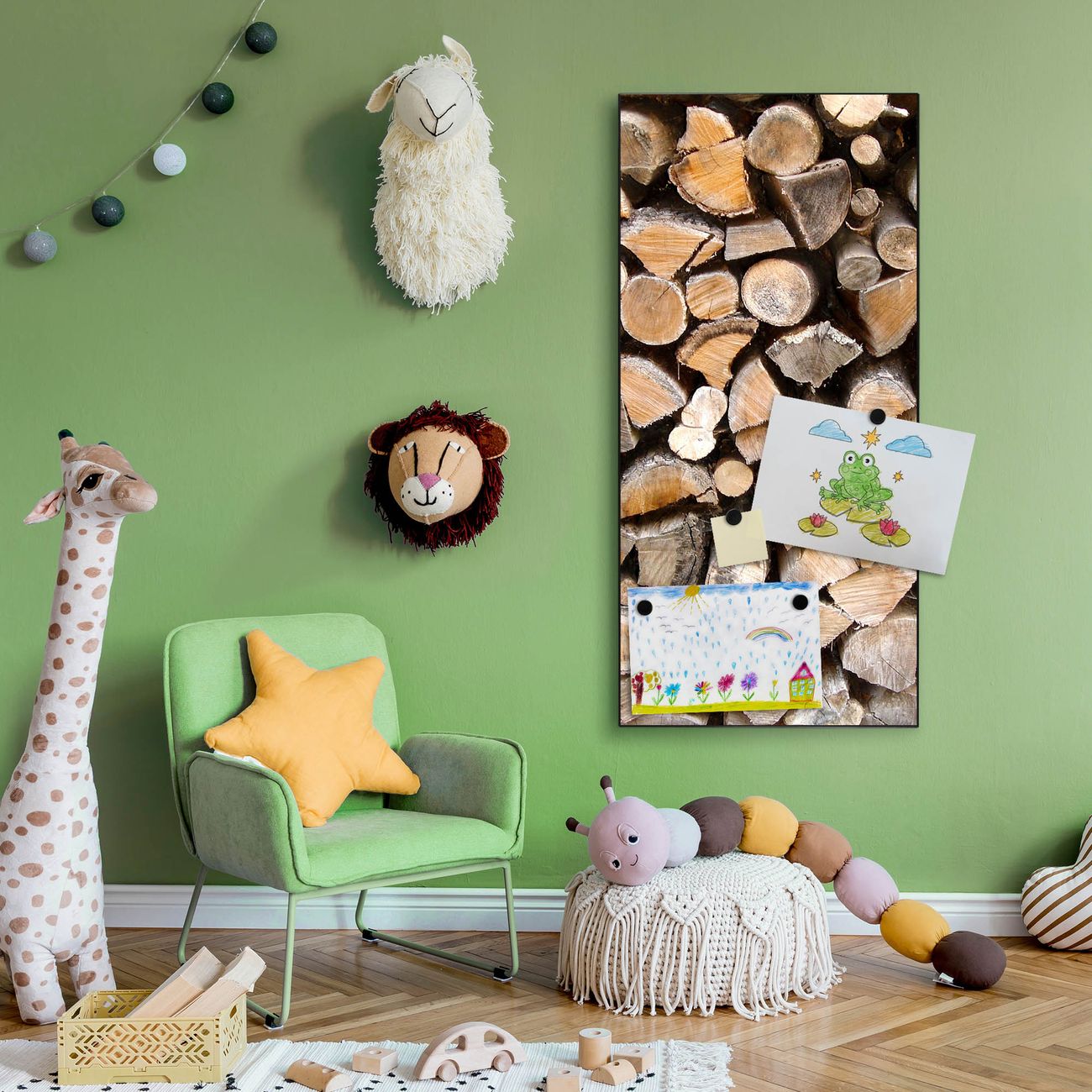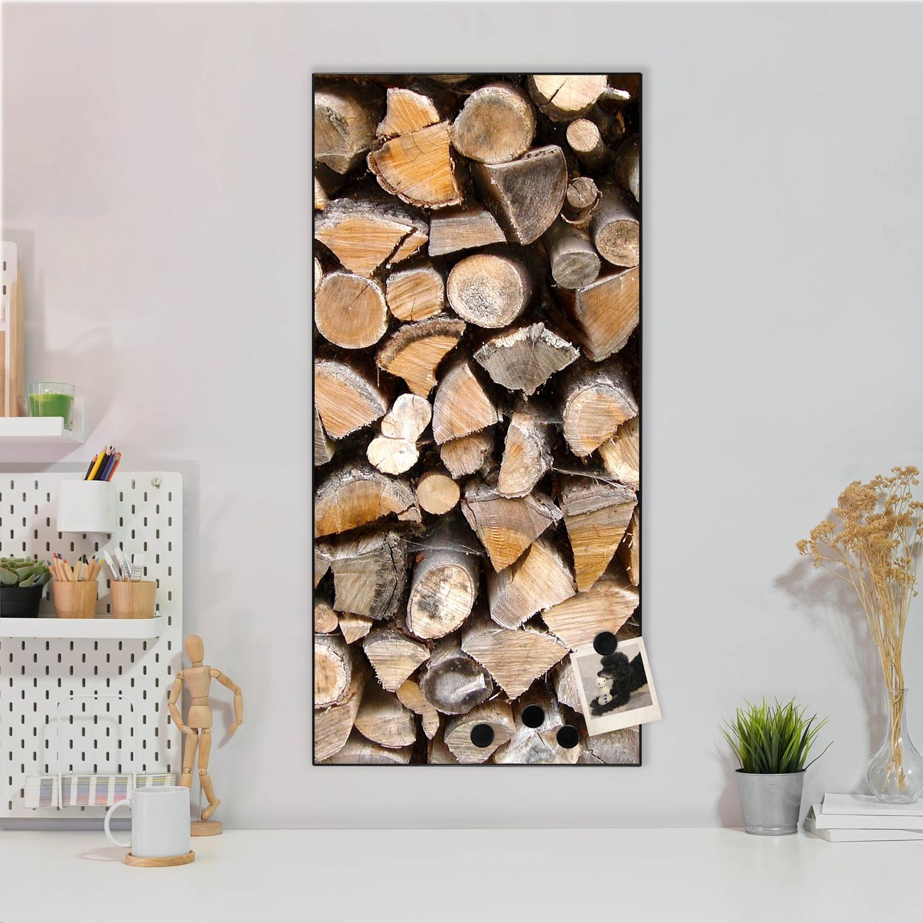 Stahl Magnettafel Hochformat 78x37cm Holzstapel