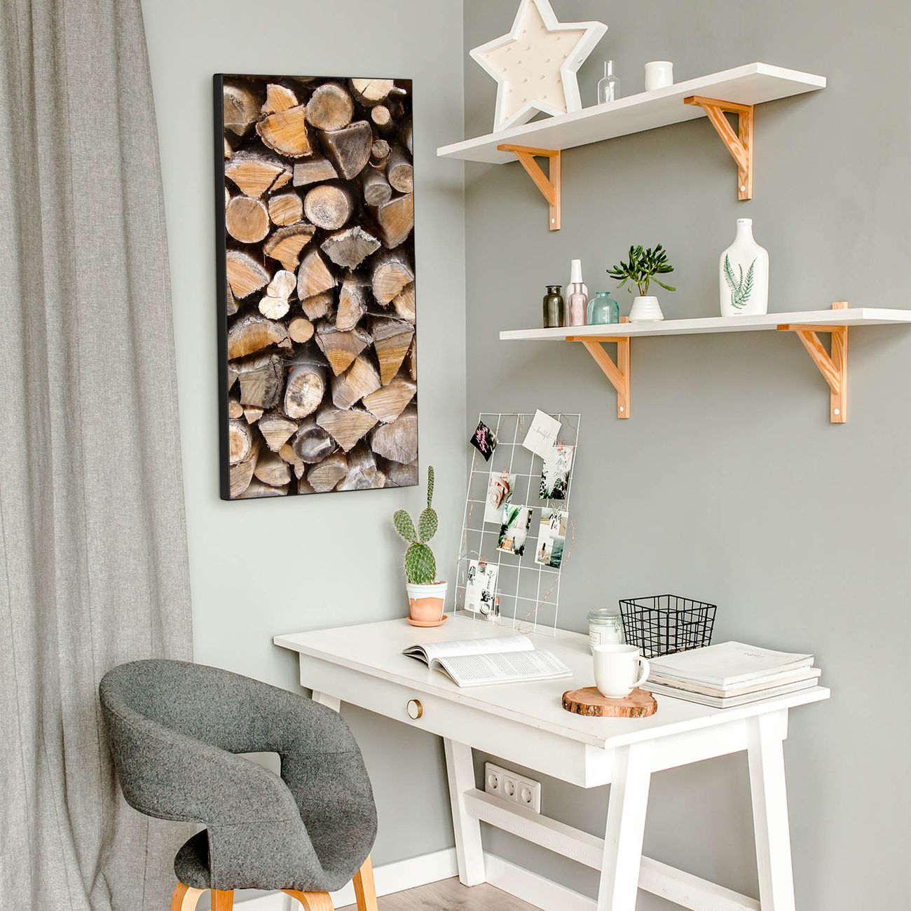 FUNKTION:  Die banjado Magnettafel mit Motiv Holzstapel Motiv bringt Ordnung in Ihr Zettelchaos. Fotos, Termine, Notizen oder Rezepte lassen Sich hier stilvoll mit Magneten ordnen, Sie behalten alles im Blick. An der Design Magnettafel halten alle handesüblichen Magnete. DESIGN:  Die magnetische Pinnwand mit dem Motiv Motiv Holzstapel ist ein eleganter Begleiter im Alltag. Mit dieser Memotafel aus Metall haben Sie auch ohne Notizen und Magnete ein schönes Dekoelement. Das Format bietet Ihnen ausreichend Platz um alle wichtigen Informationen im Blick zu behalten. DETAILS:  Die Magnettafel besteht aus silber-grau, weiß oder schwarzlackiertem Stahl. Sie hat eine Größe von 37 x 78 x 2cm. Es befinden sich auf der Rückseite vorgefertigte Aufhängungen die eine schnelle und unkomplizierte Anbringung ermöglichen. Das Motiv ist mit einem seidenmatten Laminat versehen und schützt so zusätzlich vor Kratzern. NUTZEN:  Sie können dieses Memoboard groß als Wandbild nutzen, es halten alle handelsüblichen Magneten daran. Die Pinnwand ist mit einem feuchten Lappen oder Schwamm abwischbar. Sie finden bei uns eine große Auswahl an passenden Magneten. BANJADO:  Wir sind ein kleines Team aus dem Herzen von Sachsen. Wir fertigen alle Artikel von Hand für Sie an, Sie erhalten keine preiswerte Importware. Auf Wunsch können Sie auch Ihr eigenes Foto auf die Magnettafel aufbringen, schreiben Sie uns an. Herzlichst, Ihr banjado-Team
