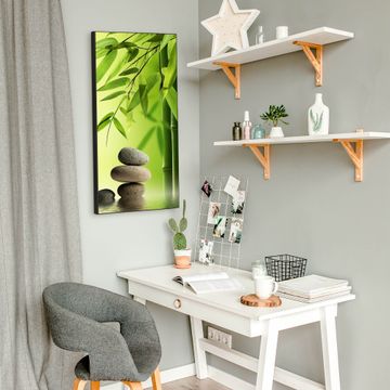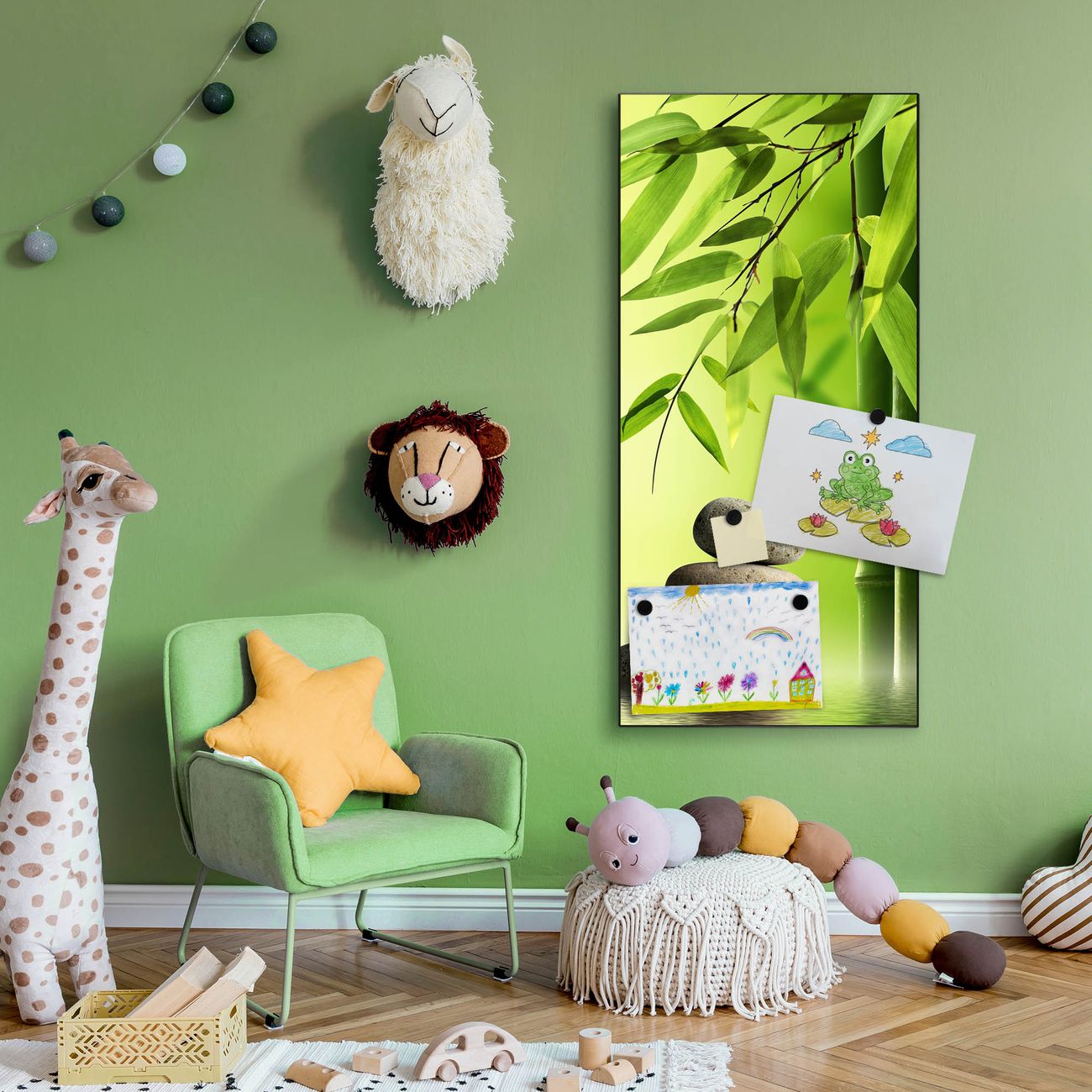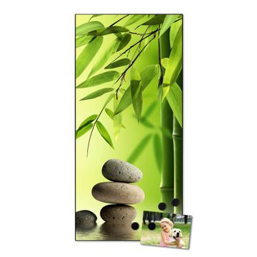 FUNKTION:  Die banjado Magnettafel mit Motiv Innere Ruhe Motiv bringt Ordnung in Ihr Zettelchaos. Fotos, Termine, Notizen oder Rezepte lassen Sich hier stilvoll mit Magneten ordnen, Sie behalten alles im Blick. An der Design Magnettafel halten alle handesüblichen Magnete. DESIGN:  Die magnetische Pinnwand mit dem Motiv Motiv Innere Ruhe ist ein eleganter Begleiter im Alltag. Mit dieser Memotafel aus Metall haben Sie auch ohne Notizen und Magnete ein schönes Dekoelement. Das Format bietet Ihnen ausreichend Platz um alle wichtigen Informationen im Blick zu behalten. DETAILS:  Die Magnettafel besteht aus silber-grau, weiß oder schwarzlackiertem Stahl. Sie hat eine Größe von 37 x 78 x 2cm. Es befinden sich auf der Rückseite vorgefertigte Aufhängungen die eine schnelle und unkomplizierte Anbringung ermöglichen. Das Motiv ist mit einem seidenmatten Laminat versehen und schützt so zusätzlich vor Kratzern. NUTZEN:  Sie können dieses Memoboard groß als Wandbild nutzen, es halten alle handelsüblichen Magneten daran. Die Pinnwand ist mit einem feuchten Lappen oder Schwamm abwischbar. Sie finden bei uns eine große Auswahl an passenden Magneten. BANJADO:  Wir sind ein kleines Team aus dem Herzen von Sachsen. Wir fertigen alle Artikel von Hand für Sie an, Sie erhalten keine preiswerte Importware. Auf Wunsch können Sie auch Ihr eigenes Foto auf die Magnettafel aufbringen, schreiben Sie uns an. Herzlichst, Ihr banjado-Team