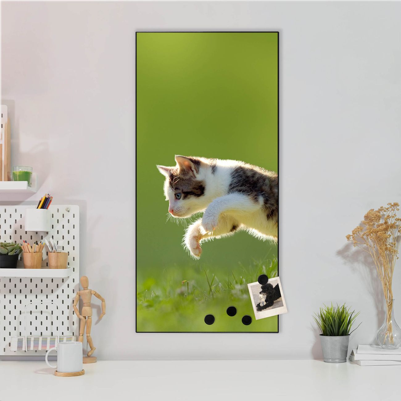 Stahl Magnettafel Hochformat 78x37cm Jagende Katze