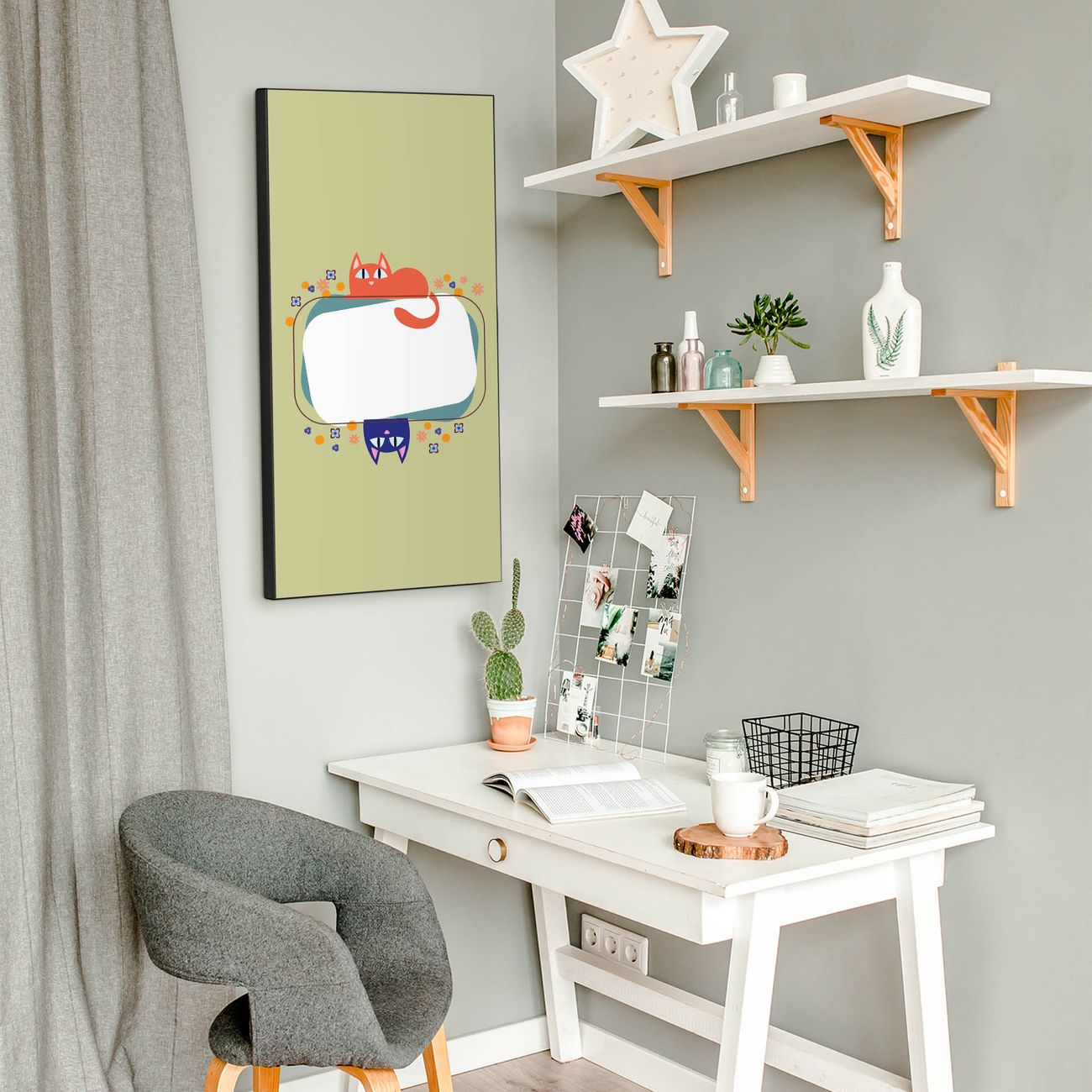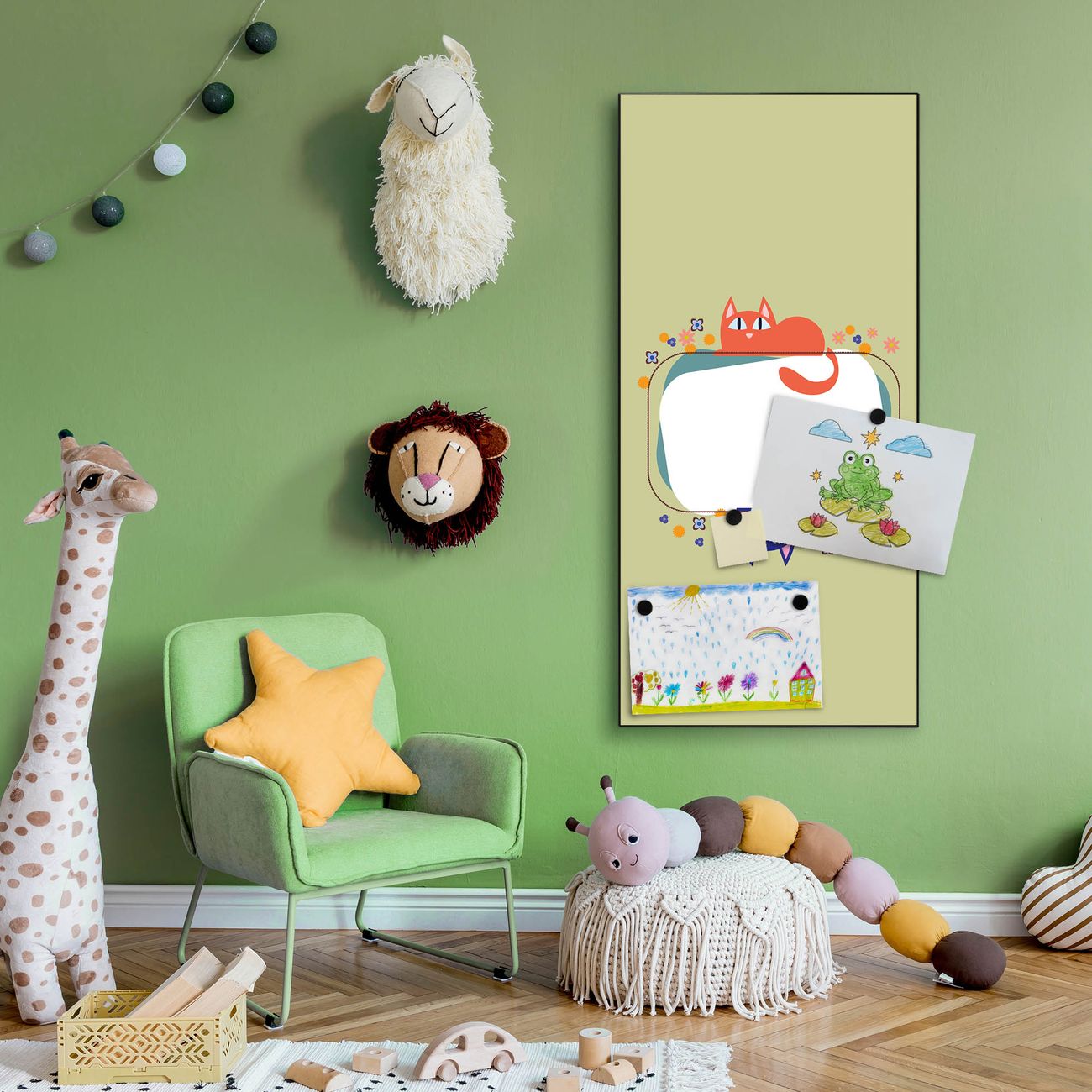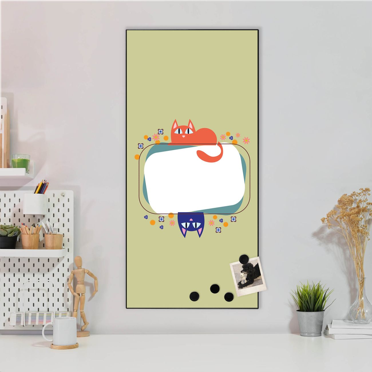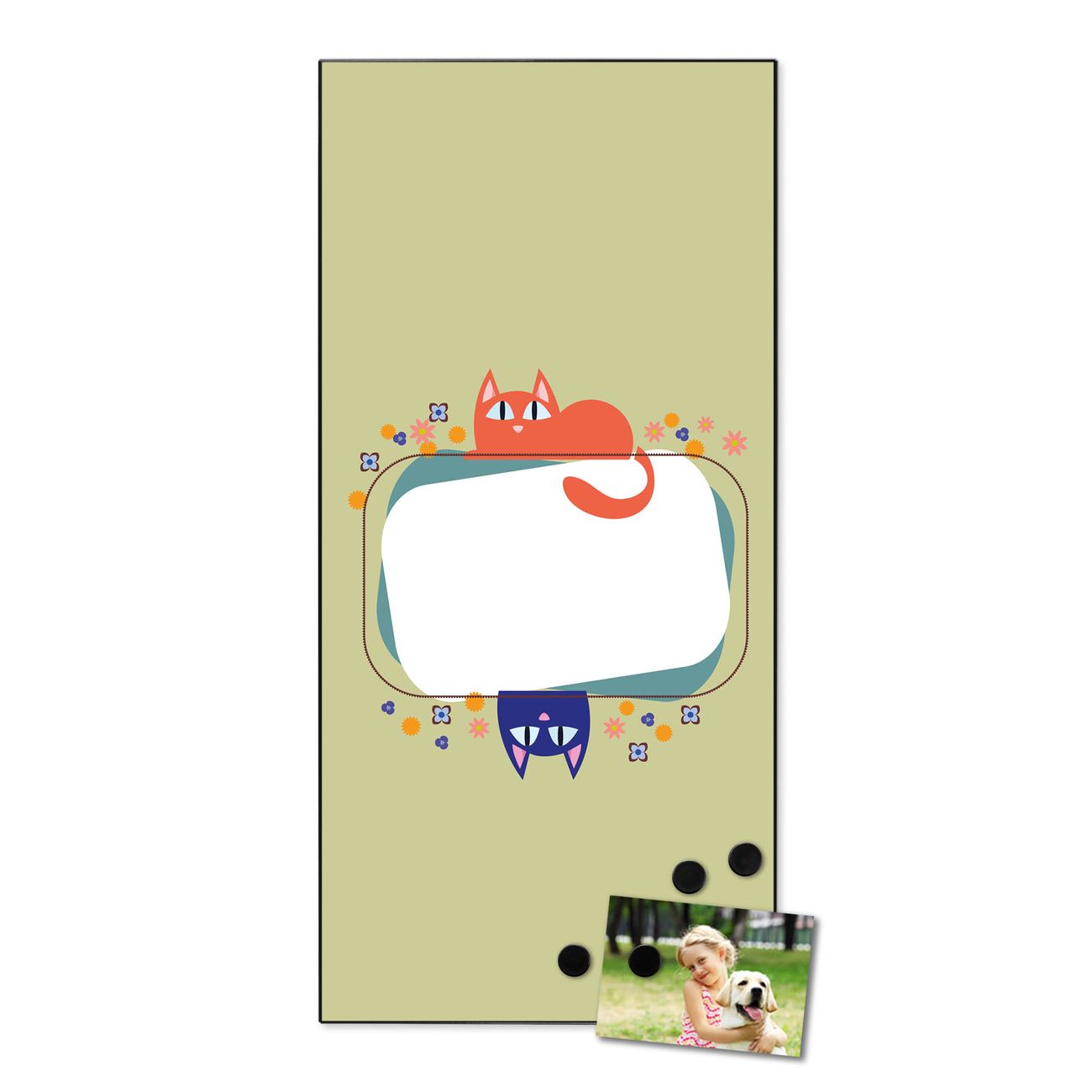 FUNKTION:  Die banjado Magnettafel mit Motiv Karikatur Katzen Motiv bringt Ordnung in Ihr Zettelchaos. Fotos, Termine, Notizen oder Rezepte lassen Sich hier stilvoll mit Magneten ordnen, Sie behalten alles im Blick. An der Design Magnettafel halten alle handesüblichen Magnete. DESIGN:  Die magnetische Pinnwand mit dem Motiv Motiv Karikatur Katzen ist ein eleganter Begleiter im Alltag. Mit dieser Memotafel aus Metall haben Sie auch ohne Notizen und Magnete ein schönes Dekoelement. Das Format bietet Ihnen ausreichend Platz um alle wichtigen Informationen im Blick zu behalten. DETAILS:  Die Magnettafel besteht aus silber-grau, weiß oder schwarzlackiertem Stahl. Sie hat eine Größe von 37 x 78 x 2cm. Es befinden sich auf der Rückseite vorgefertigte Aufhängungen die eine schnelle und unkomplizierte Anbringung ermöglichen. Das Motiv ist mit einem seidenmatten Laminat versehen und schützt so zusätzlich vor Kratzern. NUTZEN:  Sie können dieses Memoboard groß als Wandbild nutzen, es halten alle handelsüblichen Magneten daran. Die Pinnwand ist mit einem feuchten Lappen oder Schwamm abwischbar. Sie finden bei uns eine große Auswahl an passenden Magneten. BANJADO:  Wir sind ein kleines Team aus dem Herzen von Sachsen. Wir fertigen alle Artikel von Hand für Sie an, Sie erhalten keine preiswerte Importware. Auf Wunsch können Sie auch Ihr eigenes Foto auf die Magnettafel aufbringen, schreiben Sie uns an. Herzlichst, Ihr banjado-Team