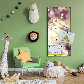 FUNKTION:  Die banjado Magnettafel mit Motiv Kinderkarussell Motiv bringt Ordnung in Ihr Zettelchaos. Fotos, Termine, Notizen oder Rezepte lassen Sich hier stilvoll mit Magneten ordnen, Sie behalten alles im Blick. An der Design Magnettafel halten alle handesüblichen Magnete. DESIGN:  Die magnetische Pinnwand mit dem Motiv Motiv Kinderkarussell ist ein eleganter Begleiter im Alltag. Mit dieser Memotafel aus Metall haben Sie auch ohne Notizen und Magnete ein schönes Dekoelement. Das Format bietet Ihnen ausreichend Platz um alle wichtigen Informationen im Blick zu behalten. DETAILS:  Die Magnettafel besteht aus silber-grau, weiß oder schwarzlackiertem Stahl. Sie hat eine Größe von 37 x 78 x 2cm. Es befinden sich auf der Rückseite vorgefertigte Aufhängungen die eine schnelle und unkomplizierte Anbringung ermöglichen. Das Motiv ist mit einem seidenmatten Laminat versehen und schützt so zusätzlich vor Kratzern. NUTZEN:  Sie können dieses Memoboard groß als Wandbild nutzen, es halten alle handelsüblichen Magneten daran. Die Pinnwand ist mit einem feuchten Lappen oder Schwamm abwischbar. Sie finden bei uns eine große Auswahl an passenden Magneten. BANJADO:  Wir sind ein kleines Team aus dem Herzen von Sachsen. Wir fertigen alle Artikel von Hand für Sie an, Sie erhalten keine preiswerte Importware. Auf Wunsch können Sie auch Ihr eigenes Foto auf die Magnettafel aufbringen, schreiben Sie uns an. Herzlichst, Ihr banjado-Team