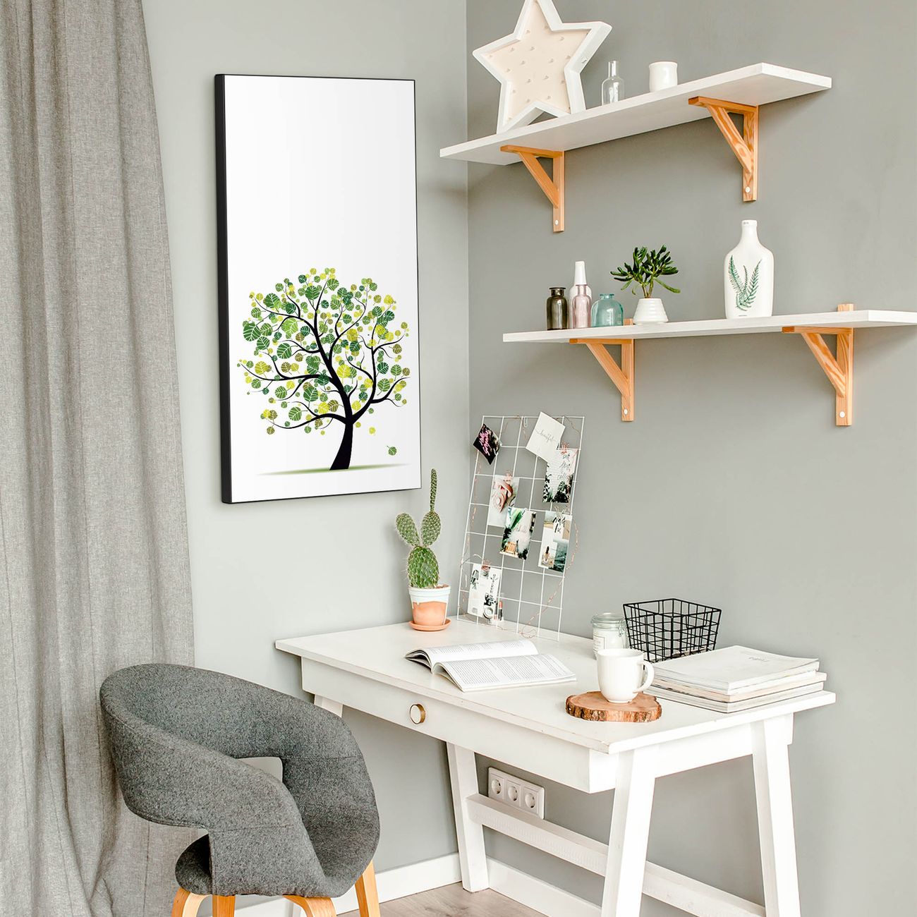 FUNKTION:  Die banjado Magnettafel mit Motiv Laubzauberbaum Motiv bringt Ordnung in Ihr Zettelchaos. Fotos, Termine, Notizen oder Rezepte lassen Sich hier stilvoll mit Magneten ordnen, Sie behalten alles im Blick. An der Design Magnettafel halten alle handesüblichen Magnete. DESIGN:  Die magnetische Pinnwand mit dem Motiv Motiv Laubzauberbaum ist ein eleganter Begleiter im Alltag. Mit dieser Memotafel aus Metall haben Sie auch ohne Notizen und Magnete ein schönes Dekoelement. Das Format bietet Ihnen ausreichend Platz um alle wichtigen Informationen im Blick zu behalten. DETAILS:  Die Magnettafel besteht aus silber-grau, weiß oder schwarzlackiertem Stahl. Sie hat eine Größe von 37 x 78 x 2cm. Es befinden sich auf der Rückseite vorgefertigte Aufhängungen die eine schnelle und unkomplizierte Anbringung ermöglichen. Das Motiv ist mit einem seidenmatten Laminat versehen und schützt so zusätzlich vor Kratzern. NUTZEN:  Sie können dieses Memoboard groß als Wandbild nutzen, es halten alle handelsüblichen Magneten daran. Die Pinnwand ist mit einem feuchten Lappen oder Schwamm abwischbar. Sie finden bei uns eine große Auswahl an passenden Magneten. BANJADO:  Wir sind ein kleines Team aus dem Herzen von Sachsen. Wir fertigen alle Artikel von Hand für Sie an, Sie erhalten keine preiswerte Importware. Auf Wunsch können Sie auch Ihr eigenes Foto auf die Magnettafel aufbringen, schreiben Sie uns an. Herzlichst, Ihr banjado-Team