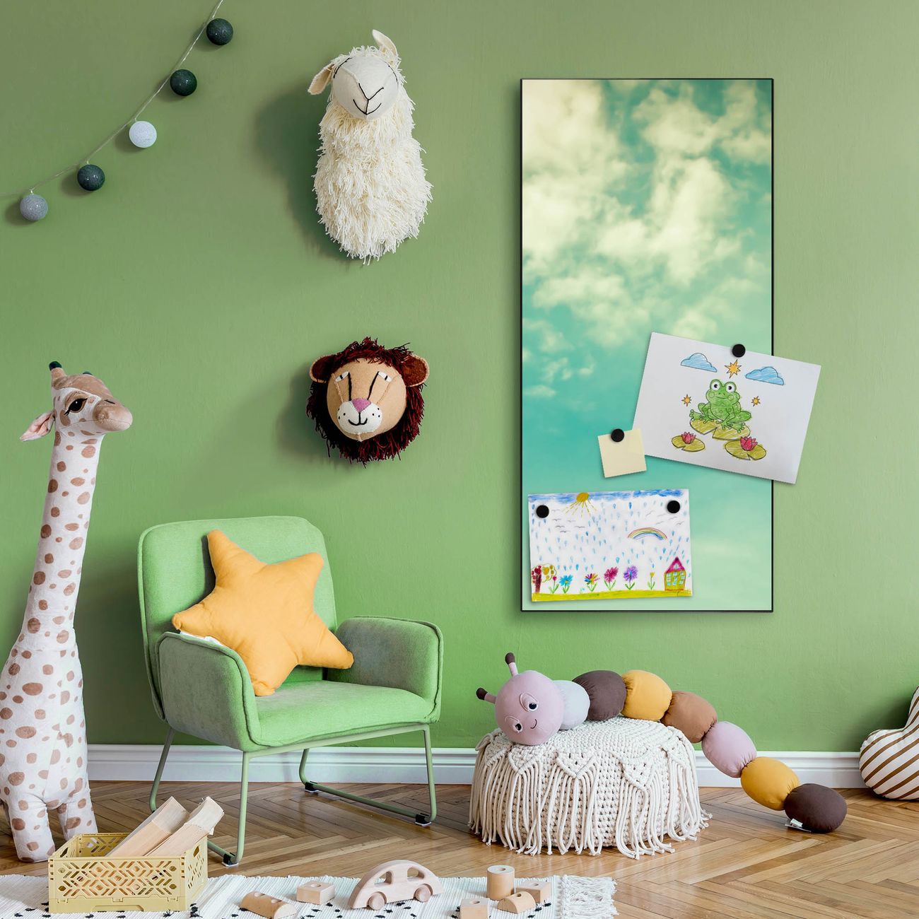 FUNKTION:  Die banjado Magnettafel mit Motiv Leicht Bewölkt Motiv bringt Ordnung in Ihr Zettelchaos. Fotos, Termine, Notizen oder Rezepte lassen Sich hier stilvoll mit Magneten ordnen, Sie behalten alles im Blick. An der Design Magnettafel halten alle handesüblichen Magnete. DESIGN:  Die magnetische Pinnwand mit dem Motiv Motiv Leicht Bewölkt ist ein eleganter Begleiter im Alltag. Mit dieser Memotafel aus Metall haben Sie auch ohne Notizen und Magnete ein schönes Dekoelement. Das Format bietet Ihnen ausreichend Platz um alle wichtigen Informationen im Blick zu behalten. DETAILS:  Die Magnettafel besteht aus silber-grau, weiß oder schwarzlackiertem Stahl. Sie hat eine Größe von 37 x 78 x 2cm. Es befinden sich auf der Rückseite vorgefertigte Aufhängungen die eine schnelle und unkomplizierte Anbringung ermöglichen. Das Motiv ist mit einem seidenmatten Laminat versehen und schützt so zusätzlich vor Kratzern. NUTZEN:  Sie können dieses Memoboard groß als Wandbild nutzen, es halten alle handelsüblichen Magneten daran. Die Pinnwand ist mit einem feuchten Lappen oder Schwamm abwischbar. Sie finden bei uns eine große Auswahl an passenden Magneten. BANJADO:  Wir sind ein kleines Team aus dem Herzen von Sachsen. Wir fertigen alle Artikel von Hand für Sie an, Sie erhalten keine preiswerte Importware. Auf Wunsch können Sie auch Ihr eigenes Foto auf die Magnettafel aufbringen, schreiben Sie uns an. Herzlichst, Ihr banjado-Team