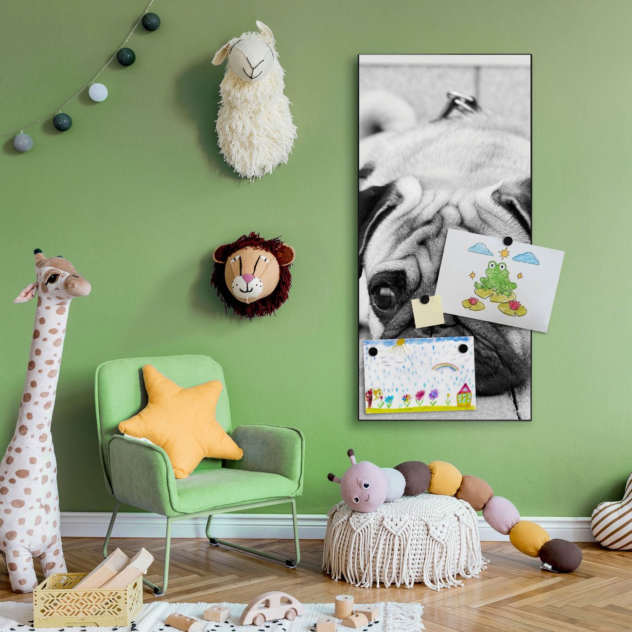 FUNKTION:  Die banjado Magnettafel mit Motiv Lotty Motiv bringt Ordnung in Ihr Zettelchaos. Fotos, Termine, Notizen oder Rezepte lassen Sich hier stilvoll mit Magneten ordnen, Sie behalten alles im Blick. An der Design Magnettafel halten alle handesüblichen Magnete. DESIGN:  Die magnetische Pinnwand mit dem Motiv Motiv Lotty ist ein eleganter Begleiter im Alltag. Mit dieser Memotafel aus Metall haben Sie auch ohne Notizen und Magnete ein schönes Dekoelement. Das Format bietet Ihnen ausreichend Platz um alle wichtigen Informationen im Blick zu behalten. DETAILS:  Die Magnettafel besteht aus silber-grau, weiß oder schwarzlackiertem Stahl. Sie hat eine Größe von 37 x 78 x 2cm. Es befinden sich auf der Rückseite vorgefertigte Aufhängungen die eine schnelle und unkomplizierte Anbringung ermöglichen. Das Motiv ist mit einem seidenmatten Laminat versehen und schützt so zusätzlich vor Kratzern. NUTZEN:  Sie können dieses Memoboard groß als Wandbild nutzen, es halten alle handelsüblichen Magneten daran. Die Pinnwand ist mit einem feuchten Lappen oder Schwamm abwischbar. Sie finden bei uns eine große Auswahl an passenden Magneten. BANJADO:  Wir sind ein kleines Team aus dem Herzen von Sachsen. Wir fertigen alle Artikel von Hand für Sie an, Sie erhalten keine preiswerte Importware. Auf Wunsch können Sie auch Ihr eigenes Foto auf die Magnettafel aufbringen, schreiben Sie uns an. Herzlichst, Ihr banjado-Team
