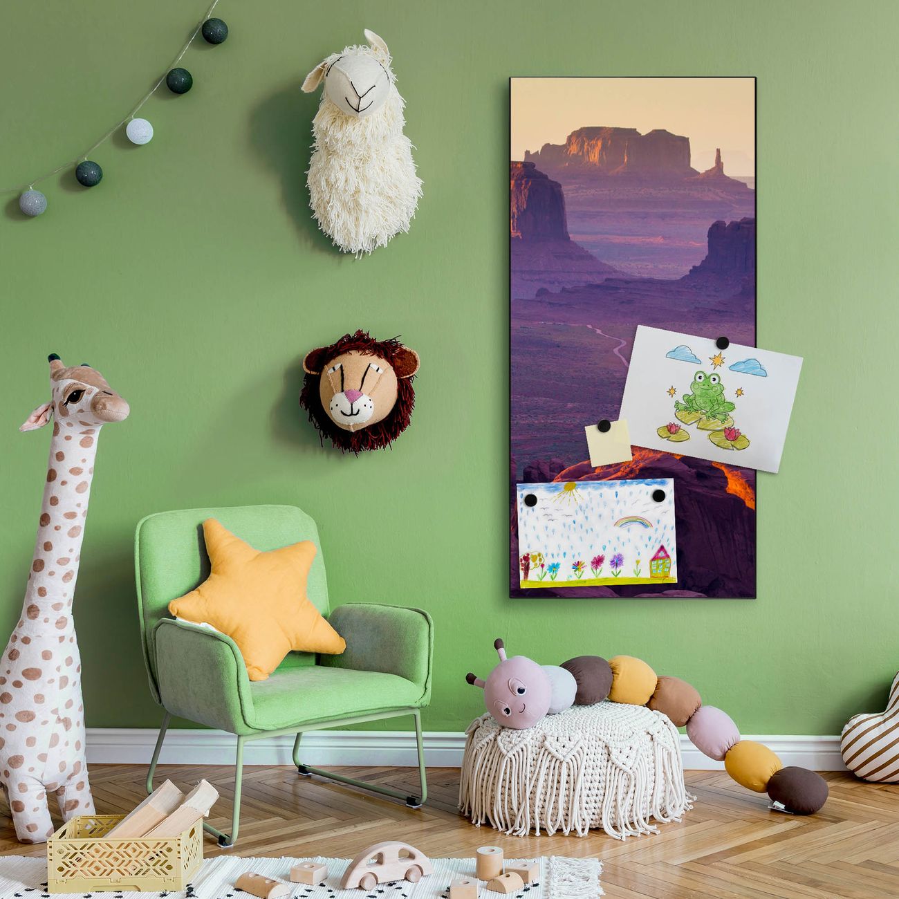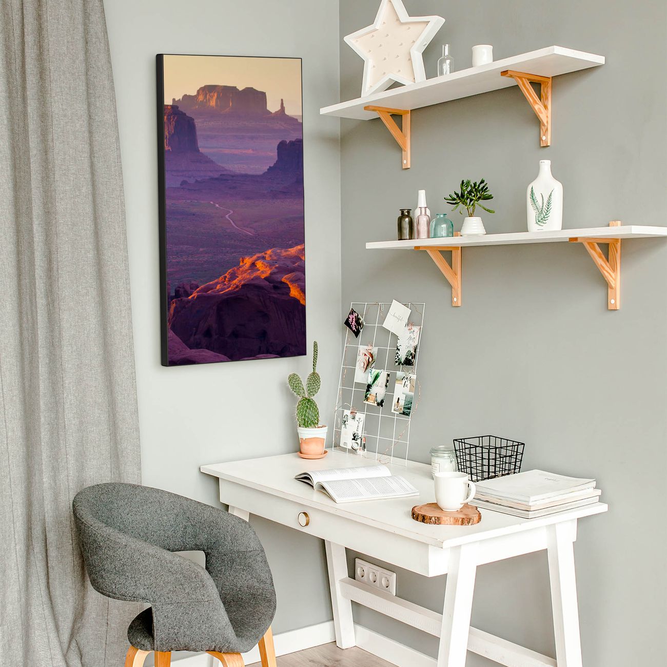 FUNKTION:  Die banjado Magnettafel mit Motiv Monument Valley Motiv bringt Ordnung in Ihr Zettelchaos. Fotos, Termine, Notizen oder Rezepte lassen Sich hier stilvoll mit Magneten ordnen, Sie behalten alles im Blick. An der Design Magnettafel halten alle handesüblichen Magnete. DESIGN:  Die magnetische Pinnwand mit dem Motiv Motiv Monument Valley ist ein eleganter Begleiter im Alltag. Mit dieser Memotafel aus Metall haben Sie auch ohne Notizen und Magnete ein schönes Dekoelement. Das Format bietet Ihnen ausreichend Platz um alle wichtigen Informationen im Blick zu behalten. DETAILS:  Die Magnettafel besteht aus silber-grau, weiß oder schwarzlackiertem Stahl. Sie hat eine Größe von 37 x 78 x 2cm. Es befinden sich auf der Rückseite vorgefertigte Aufhängungen die eine schnelle und unkomplizierte Anbringung ermöglichen. Das Motiv ist mit einem seidenmatten Laminat versehen und schützt so zusätzlich vor Kratzern. NUTZEN:  Sie können dieses Memoboard groß als Wandbild nutzen, es halten alle handelsüblichen Magneten daran. Die Pinnwand ist mit einem feuchten Lappen oder Schwamm abwischbar. Sie finden bei uns eine große Auswahl an passenden Magneten. BANJADO:  Wir sind ein kleines Team aus dem Herzen von Sachsen. Wir fertigen alle Artikel von Hand für Sie an, Sie erhalten keine preiswerte Importware. Auf Wunsch können Sie auch Ihr eigenes Foto auf die Magnettafel aufbringen, schreiben Sie uns an. Herzlichst, Ihr banjado-Team