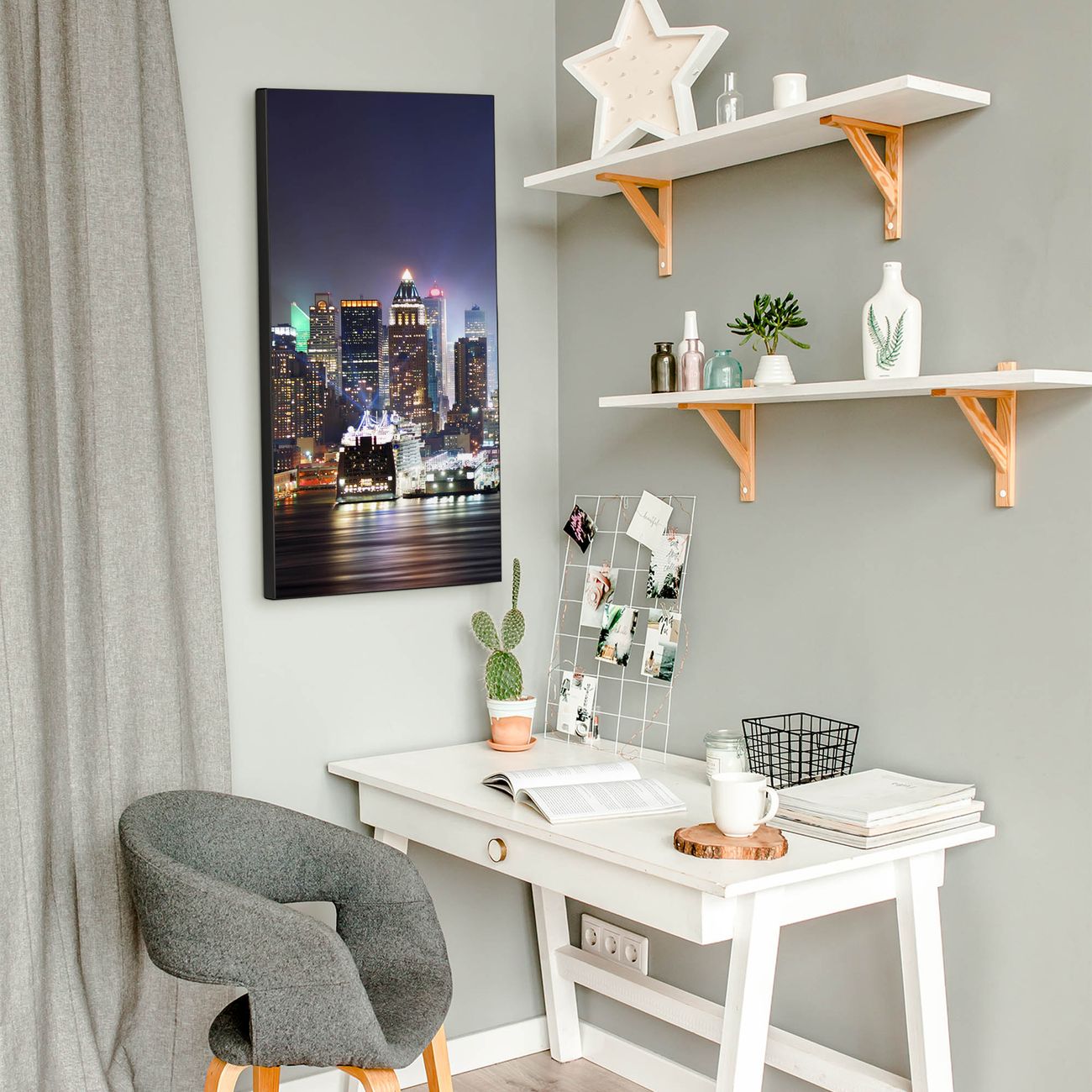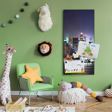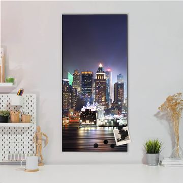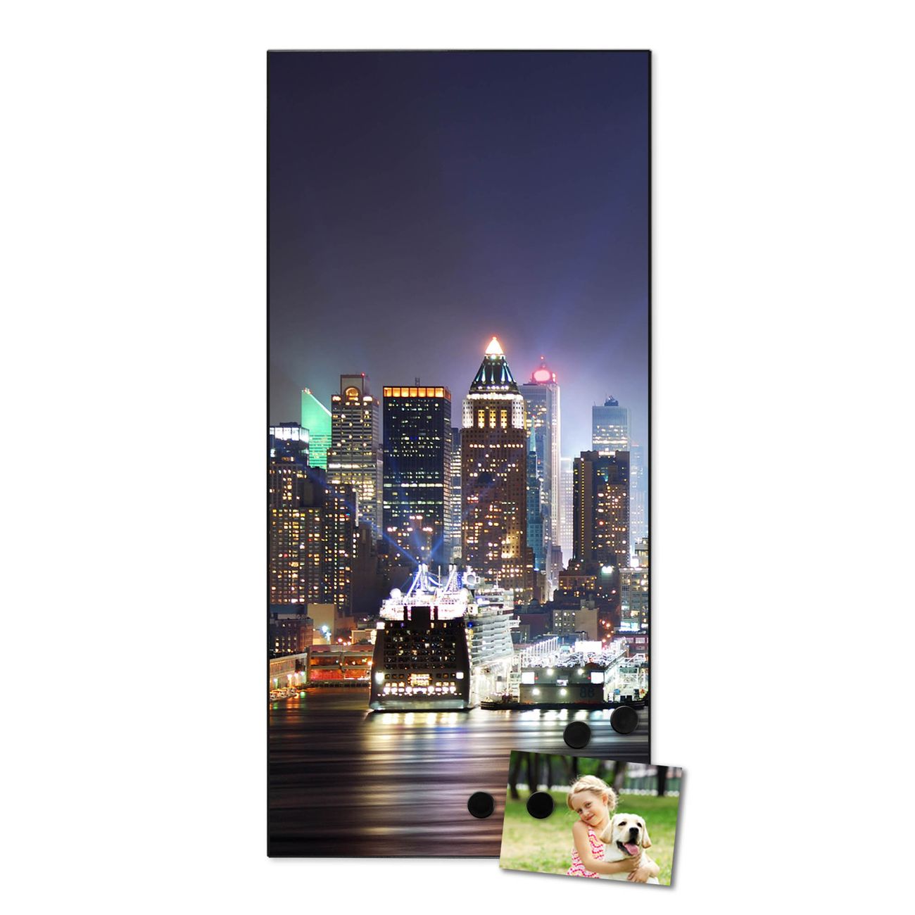 FUNKTION:  Die banjado Magnettafel mit Motiv New York Motiv bringt Ordnung in Ihr Zettelchaos. Fotos, Termine, Notizen oder Rezepte lassen Sich hier stilvoll mit Magneten ordnen, Sie behalten alles im Blick. An der Design Magnettafel halten alle handesüblichen Magnete. DESIGN:  Die magnetische Pinnwand mit dem Motiv Motiv New York ist ein eleganter Begleiter im Alltag. Mit dieser Memotafel aus Metall haben Sie auch ohne Notizen und Magnete ein schönes Dekoelement. Das Format bietet Ihnen ausreichend Platz um alle wichtigen Informationen im Blick zu behalten. DETAILS:  Die Magnettafel besteht aus silber-grau, weiß oder schwarzlackiertem Stahl. Sie hat eine Größe von 37 x 78 x 2cm. Es befinden sich auf der Rückseite vorgefertigte Aufhängungen die eine schnelle und unkomplizierte Anbringung ermöglichen. Das Motiv ist mit einem seidenmatten Laminat versehen und schützt so zusätzlich vor Kratzern. NUTZEN:  Sie können dieses Memoboard groß als Wandbild nutzen, es halten alle handelsüblichen Magneten daran. Die Pinnwand ist mit einem feuchten Lappen oder Schwamm abwischbar. Sie finden bei uns eine große Auswahl an passenden Magneten. BANJADO:  Wir sind ein kleines Team aus dem Herzen von Sachsen. Wir fertigen alle Artikel von Hand für Sie an, Sie erhalten keine preiswerte Importware. Auf Wunsch können Sie auch Ihr eigenes Foto auf die Magnettafel aufbringen, schreiben Sie uns an. Herzlichst, Ihr banjado-Team