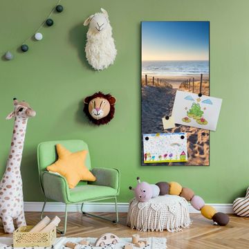 FUNKTION:  Die banjado Magnettafel mit Motiv Nordseestrand Motiv bringt Ordnung in Ihr Zettelchaos. Fotos, Termine, Notizen oder Rezepte lassen Sich hier stilvoll mit Magneten ordnen, Sie behalten alles im Blick. An der Design Magnettafel halten alle handesüblichen Magnete. DESIGN:  Die magnetische Pinnwand mit dem Motiv Motiv Nordseestrand ist ein eleganter Begleiter im Alltag. Mit dieser Memotafel aus Metall haben Sie auch ohne Notizen und Magnete ein schönes Dekoelement. Das Format bietet Ihnen ausreichend Platz um alle wichtigen Informationen im Blick zu behalten. DETAILS:  Die Magnettafel besteht aus silber-grau, weiß oder schwarzlackiertem Stahl. Sie hat eine Größe von 37 x 78 x 2cm. Es befinden sich auf der Rückseite vorgefertigte Aufhängungen die eine schnelle und unkomplizierte Anbringung ermöglichen. Das Motiv ist mit einem seidenmatten Laminat versehen und schützt so zusätzlich vor Kratzern. NUTZEN:  Sie können dieses Memoboard groß als Wandbild nutzen, es halten alle handelsüblichen Magneten daran. Die Pinnwand ist mit einem feuchten Lappen oder Schwamm abwischbar. Sie finden bei uns eine große Auswahl an passenden Magneten. BANJADO:  Wir sind ein kleines Team aus dem Herzen von Sachsen. Wir fertigen alle Artikel von Hand für Sie an, Sie erhalten keine preiswerte Importware. Auf Wunsch können Sie auch Ihr eigenes Foto auf die Magnettafel aufbringen, schreiben Sie uns an. Herzlichst, Ihr banjado-Team