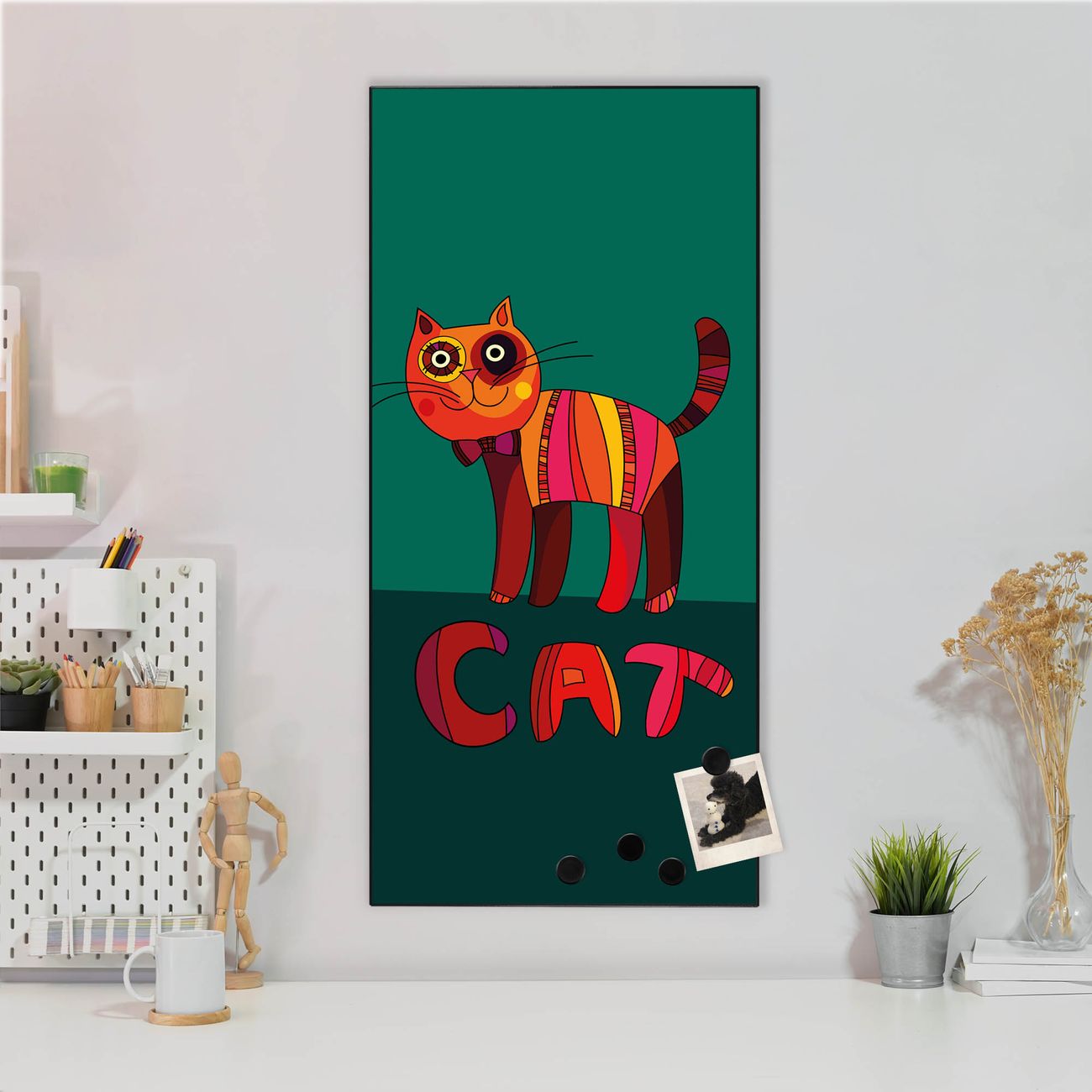 Stahl Magnettafel Hochformat 78x37cm Orange Katze