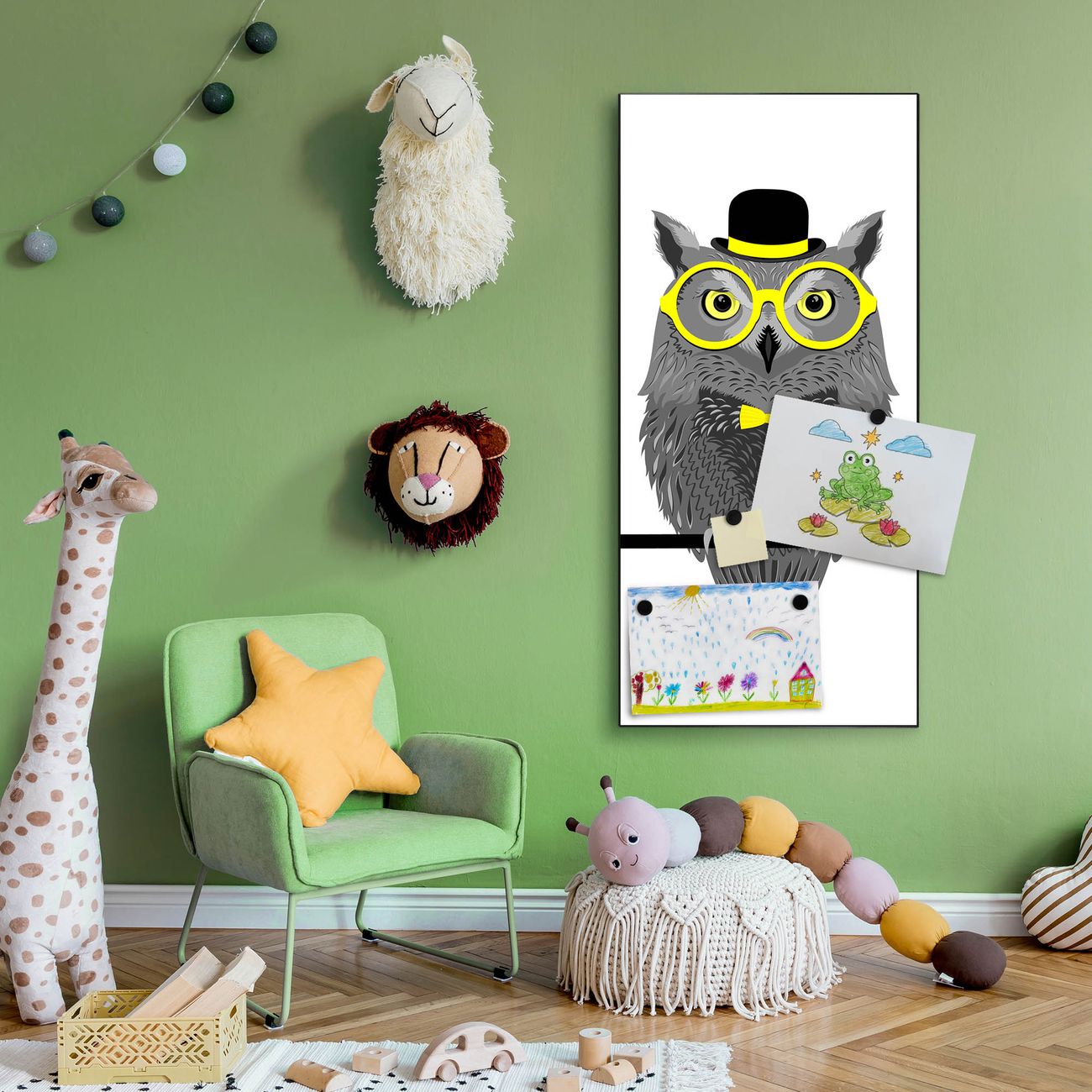 FUNKTION:  Die banjado Magnettafel mit Motiv Owling Motiv bringt Ordnung in Ihr Zettelchaos. Fotos, Termine, Notizen oder Rezepte lassen Sich hier stilvoll mit Magneten ordnen, Sie behalten alles im Blick. An der Design Magnettafel halten alle handesüblichen Magnete. DESIGN:  Die magnetische Pinnwand mit dem Motiv Motiv Owling ist ein eleganter Begleiter im Alltag. Mit dieser Memotafel aus Metall haben Sie auch ohne Notizen und Magnete ein schönes Dekoelement. Das Format bietet Ihnen ausreichend Platz um alle wichtigen Informationen im Blick zu behalten. DETAILS:  Die Magnettafel besteht aus silber-grau, weiß oder schwarzlackiertem Stahl. Sie hat eine Größe von 37 x 78 x 2cm. Es befinden sich auf der Rückseite vorgefertigte Aufhängungen die eine schnelle und unkomplizierte Anbringung ermöglichen. Das Motiv ist mit einem seidenmatten Laminat versehen und schützt so zusätzlich vor Kratzern. NUTZEN:  Sie können dieses Memoboard groß als Wandbild nutzen, es halten alle handelsüblichen Magneten daran. Die Pinnwand ist mit einem feuchten Lappen oder Schwamm abwischbar. Sie finden bei uns eine große Auswahl an passenden Magneten. BANJADO:  Wir sind ein kleines Team aus dem Herzen von Sachsen. Wir fertigen alle Artikel von Hand für Sie an, Sie erhalten keine preiswerte Importware. Auf Wunsch können Sie auch Ihr eigenes Foto auf die Magnettafel aufbringen, schreiben Sie uns an. Herzlichst, Ihr banjado-Team