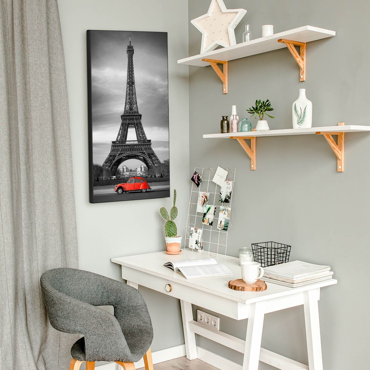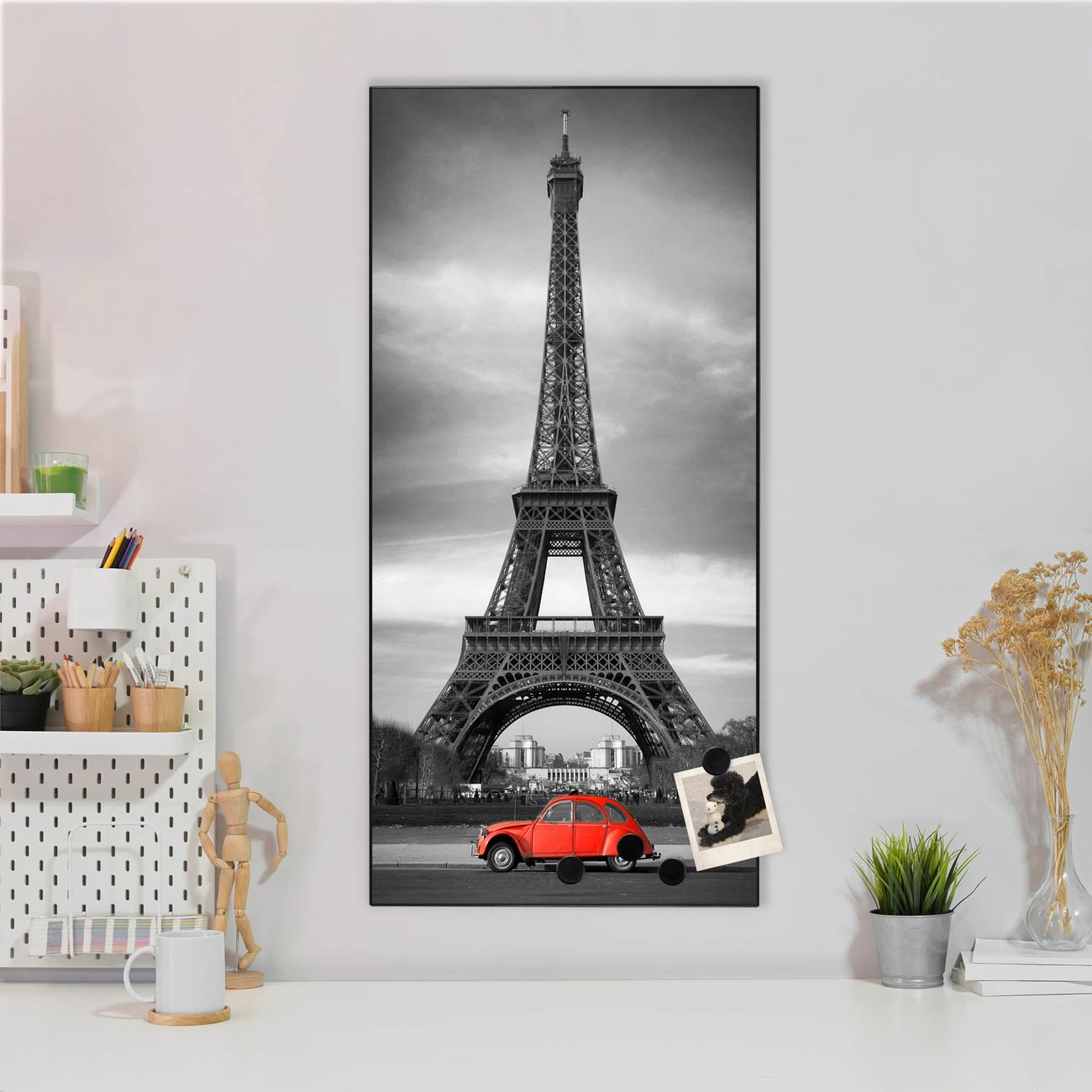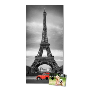 FUNKTION:  Die banjado Magnettafel mit Motiv Paris Motiv bringt Ordnung in Ihr Zettelchaos. Fotos, Termine, Notizen oder Rezepte lassen Sich hier stilvoll mit Magneten ordnen, Sie behalten alles im Blick. An der Design Magnettafel halten alle handesüblichen Magnete. DESIGN:  Die magnetische Pinnwand mit dem Motiv Motiv Paris ist ein eleganter Begleiter im Alltag. Mit dieser Memotafel aus Metall haben Sie auch ohne Notizen und Magnete ein schönes Dekoelement. Das Format bietet Ihnen ausreichend Platz um alle wichtigen Informationen im Blick zu behalten. DETAILS:  Die Magnettafel besteht aus silber-grau, weiß oder schwarzlackiertem Stahl. Sie hat eine Größe von 37 x 78 x 2cm. Es befinden sich auf der Rückseite vorgefertigte Aufhängungen die eine schnelle und unkomplizierte Anbringung ermöglichen. Das Motiv ist mit einem seidenmatten Laminat versehen und schützt so zusätzlich vor Kratzern. NUTZEN:  Sie können dieses Memoboard groß als Wandbild nutzen, es halten alle handelsüblichen Magneten daran. Die Pinnwand ist mit einem feuchten Lappen oder Schwamm abwischbar. Sie finden bei uns eine große Auswahl an passenden Magneten. BANJADO:  Wir sind ein kleines Team aus dem Herzen von Sachsen. Wir fertigen alle Artikel von Hand für Sie an, Sie erhalten keine preiswerte Importware. Auf Wunsch können Sie auch Ihr eigenes Foto auf die Magnettafel aufbringen, schreiben Sie uns an. Herzlichst, Ihr banjado-Team