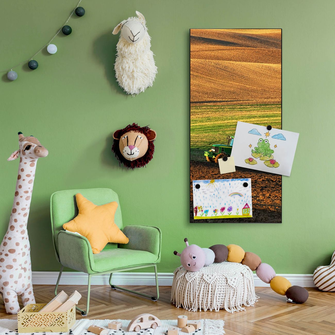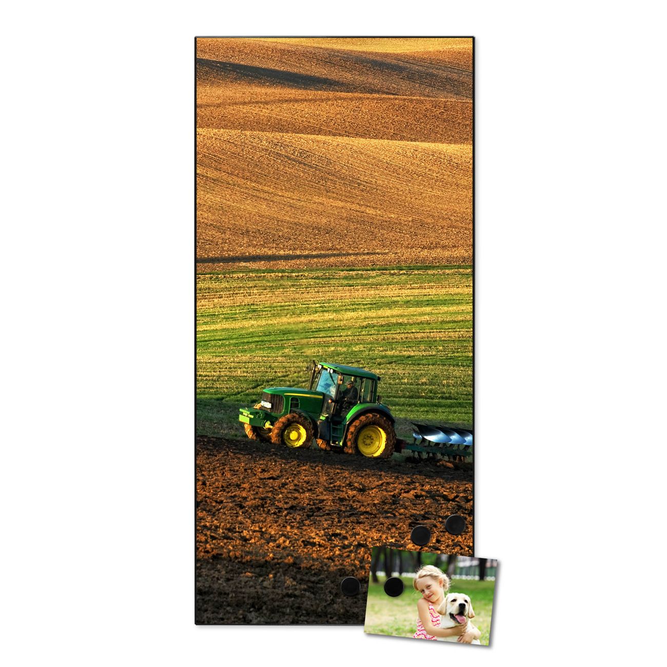 FUNKTION:  Die banjado Magnettafel mit Motiv Pflügen Motiv bringt Ordnung in Ihr Zettelchaos. Fotos, Termine, Notizen oder Rezepte lassen Sich hier stilvoll mit Magneten ordnen, Sie behalten alles im Blick. An der Design Magnettafel halten alle handesüblichen Magnete. DESIGN:  Die magnetische Pinnwand mit dem Motiv Motiv Pflügen ist ein eleganter Begleiter im Alltag. Mit dieser Memotafel aus Metall haben Sie auch ohne Notizen und Magnete ein schönes Dekoelement. Das Format bietet Ihnen ausreichend Platz um alle wichtigen Informationen im Blick zu behalten. DETAILS:  Die Magnettafel besteht aus silber-grau, weiß oder schwarzlackiertem Stahl. Sie hat eine Größe von 37 x 78 x 2cm. Es befinden sich auf der Rückseite vorgefertigte Aufhängungen die eine schnelle und unkomplizierte Anbringung ermöglichen. Das Motiv ist mit einem seidenmatten Laminat versehen und schützt so zusätzlich vor Kratzern. NUTZEN:  Sie können dieses Memoboard groß als Wandbild nutzen, es halten alle handelsüblichen Magneten daran. Die Pinnwand ist mit einem feuchten Lappen oder Schwamm abwischbar. Sie finden bei uns eine große Auswahl an passenden Magneten. BANJADO:  Wir sind ein kleines Team aus dem Herzen von Sachsen. Wir fertigen alle Artikel von Hand für Sie an, Sie erhalten keine preiswerte Importware. Auf Wunsch können Sie auch Ihr eigenes Foto auf die Magnettafel aufbringen, schreiben Sie uns an. Herzlichst, Ihr banjado-Team
