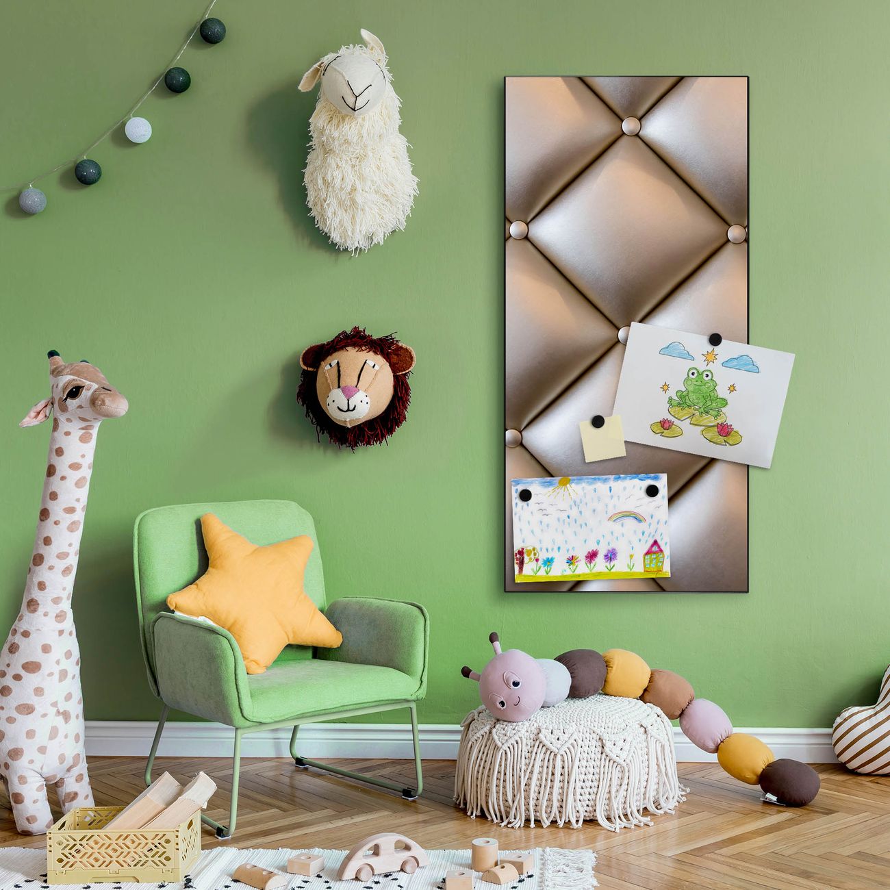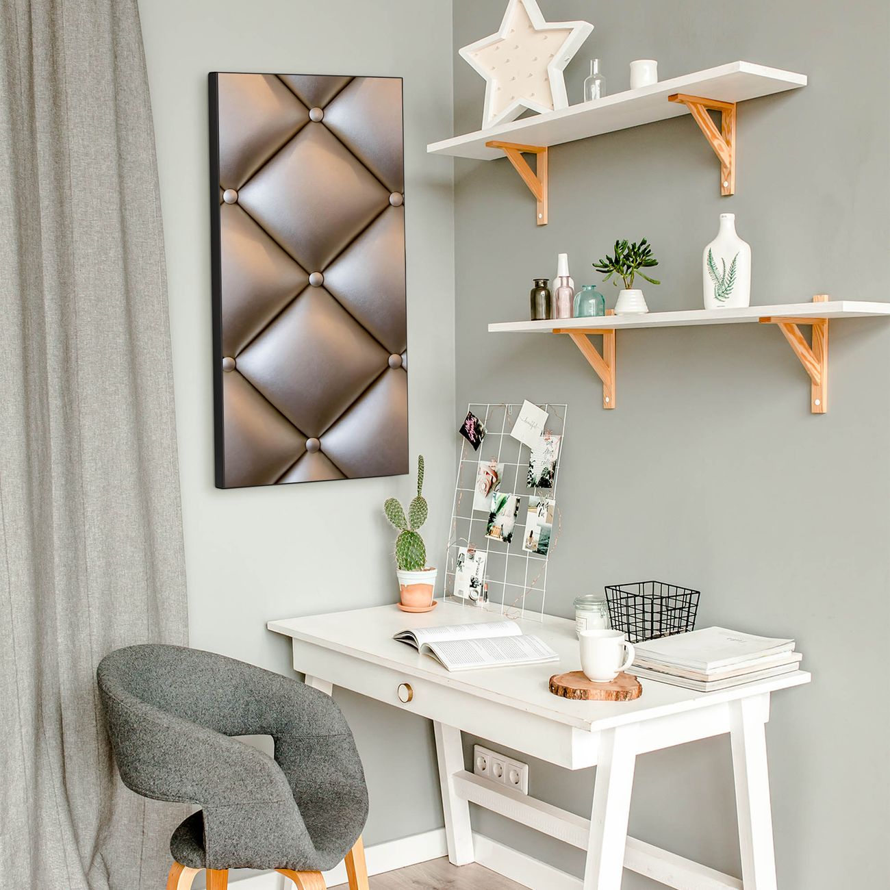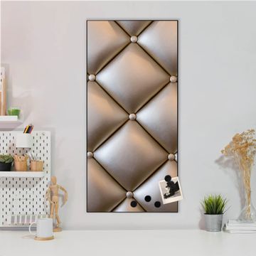 FUNKTION:  Die banjado Magnettafel mit Motiv Polster Bronze Motiv bringt Ordnung in Ihr Zettelchaos. Fotos, Termine, Notizen oder Rezepte lassen Sich hier stilvoll mit Magneten ordnen, Sie behalten alles im Blick. An der Design Magnettafel halten alle handesüblichen Magnete. DESIGN:  Die magnetische Pinnwand mit dem Motiv Motiv Polster Bronze ist ein eleganter Begleiter im Alltag. Mit dieser Memotafel aus Metall haben Sie auch ohne Notizen und Magnete ein schönes Dekoelement. Das Format bietet Ihnen ausreichend Platz um alle wichtigen Informationen im Blick zu behalten. DETAILS:  Die Magnettafel besteht aus silber-grau, weiß oder schwarzlackiertem Stahl. Sie hat eine Größe von 37 x 78 x 2cm. Es befinden sich auf der Rückseite vorgefertigte Aufhängungen die eine schnelle und unkomplizierte Anbringung ermöglichen. Das Motiv ist mit einem seidenmatten Laminat versehen und schützt so zusätzlich vor Kratzern. NUTZEN:  Sie können dieses Memoboard groß als Wandbild nutzen, es halten alle handelsüblichen Magneten daran. Die Pinnwand ist mit einem feuchten Lappen oder Schwamm abwischbar. Sie finden bei uns eine große Auswahl an passenden Magneten. BANJADO:  Wir sind ein kleines Team aus dem Herzen von Sachsen. Wir fertigen alle Artikel von Hand für Sie an, Sie erhalten keine preiswerte Importware. Auf Wunsch können Sie auch Ihr eigenes Foto auf die Magnettafel aufbringen, schreiben Sie uns an. Herzlichst, Ihr banjado-Team