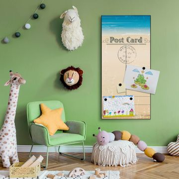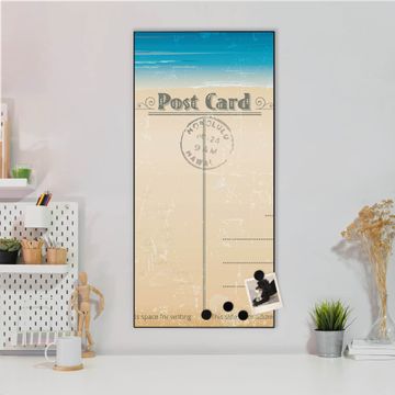 FUNKTION:  Die banjado Magnettafel mit Motiv Postkarte Motiv bringt Ordnung in Ihr Zettelchaos. Fotos, Termine, Notizen oder Rezepte lassen Sich hier stilvoll mit Magneten ordnen, Sie behalten alles im Blick. An der Design Magnettafel halten alle handesüblichen Magnete. DESIGN:  Die magnetische Pinnwand mit dem Motiv Motiv Postkarte ist ein eleganter Begleiter im Alltag. Mit dieser Memotafel aus Metall haben Sie auch ohne Notizen und Magnete ein schönes Dekoelement. Das Format bietet Ihnen ausreichend Platz um alle wichtigen Informationen im Blick zu behalten. DETAILS:  Die Magnettafel besteht aus silber-grau, weiß oder schwarzlackiertem Stahl. Sie hat eine Größe von 37 x 78 x 2cm. Es befinden sich auf der Rückseite vorgefertigte Aufhängungen die eine schnelle und unkomplizierte Anbringung ermöglichen. Das Motiv ist mit einem seidenmatten Laminat versehen und schützt so zusätzlich vor Kratzern. NUTZEN:  Sie können dieses Memoboard groß als Wandbild nutzen, es halten alle handelsüblichen Magneten daran. Die Pinnwand ist mit einem feuchten Lappen oder Schwamm abwischbar. Sie finden bei uns eine große Auswahl an passenden Magneten. BANJADO:  Wir sind ein kleines Team aus dem Herzen von Sachsen. Wir fertigen alle Artikel von Hand für Sie an, Sie erhalten keine preiswerte Importware. Auf Wunsch können Sie auch Ihr eigenes Foto auf die Magnettafel aufbringen, schreiben Sie uns an. Herzlichst, Ihr banjado-Team