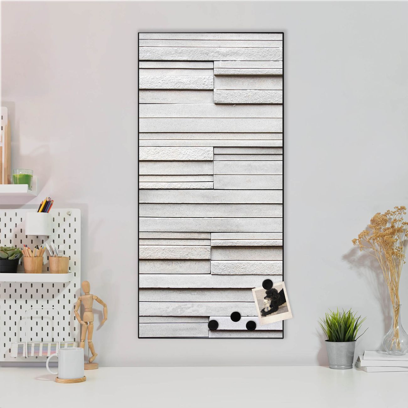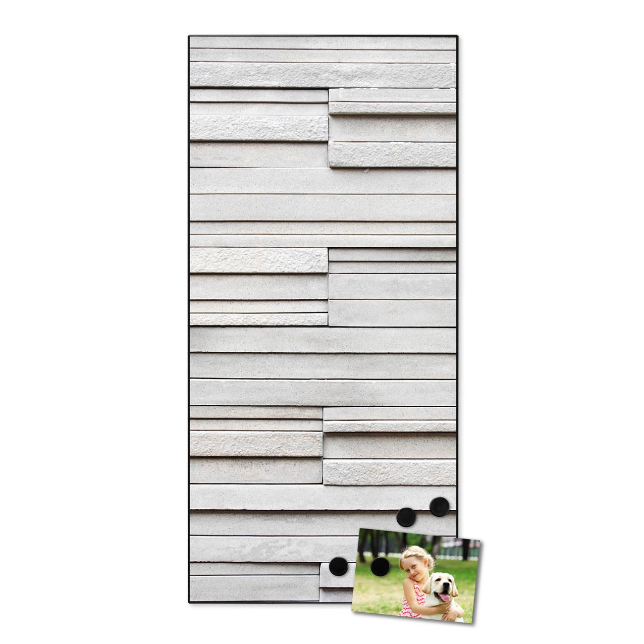 FUNKTION:  Die banjado Magnettafel mit Motiv Relief Motiv bringt Ordnung in Ihr Zettelchaos. Fotos, Termine, Notizen oder Rezepte lassen Sich hier stilvoll mit Magneten ordnen, Sie behalten alles im Blick. An der Design Magnettafel halten alle handesüblichen Magnete. DESIGN:  Die magnetische Pinnwand mit dem Motiv Motiv Relief ist ein eleganter Begleiter im Alltag. Mit dieser Memotafel aus Metall haben Sie auch ohne Notizen und Magnete ein schönes Dekoelement. Das Format bietet Ihnen ausreichend Platz um alle wichtigen Informationen im Blick zu behalten. DETAILS:  Die Magnettafel besteht aus silber-grau, weiß oder schwarzlackiertem Stahl. Sie hat eine Größe von 37 x 78 x 2cm. Es befinden sich auf der Rückseite vorgefertigte Aufhängungen die eine schnelle und unkomplizierte Anbringung ermöglichen. Das Motiv ist mit einem seidenmatten Laminat versehen und schützt so zusätzlich vor Kratzern. NUTZEN:  Sie können dieses Memoboard groß als Wandbild nutzen, es halten alle handelsüblichen Magneten daran. Die Pinnwand ist mit einem feuchten Lappen oder Schwamm abwischbar. Sie finden bei uns eine große Auswahl an passenden Magneten. BANJADO:  Wir sind ein kleines Team aus dem Herzen von Sachsen. Wir fertigen alle Artikel von Hand für Sie an, Sie erhalten keine preiswerte Importware. Auf Wunsch können Sie auch Ihr eigenes Foto auf die Magnettafel aufbringen, schreiben Sie uns an. Herzlichst, Ihr banjado-Team