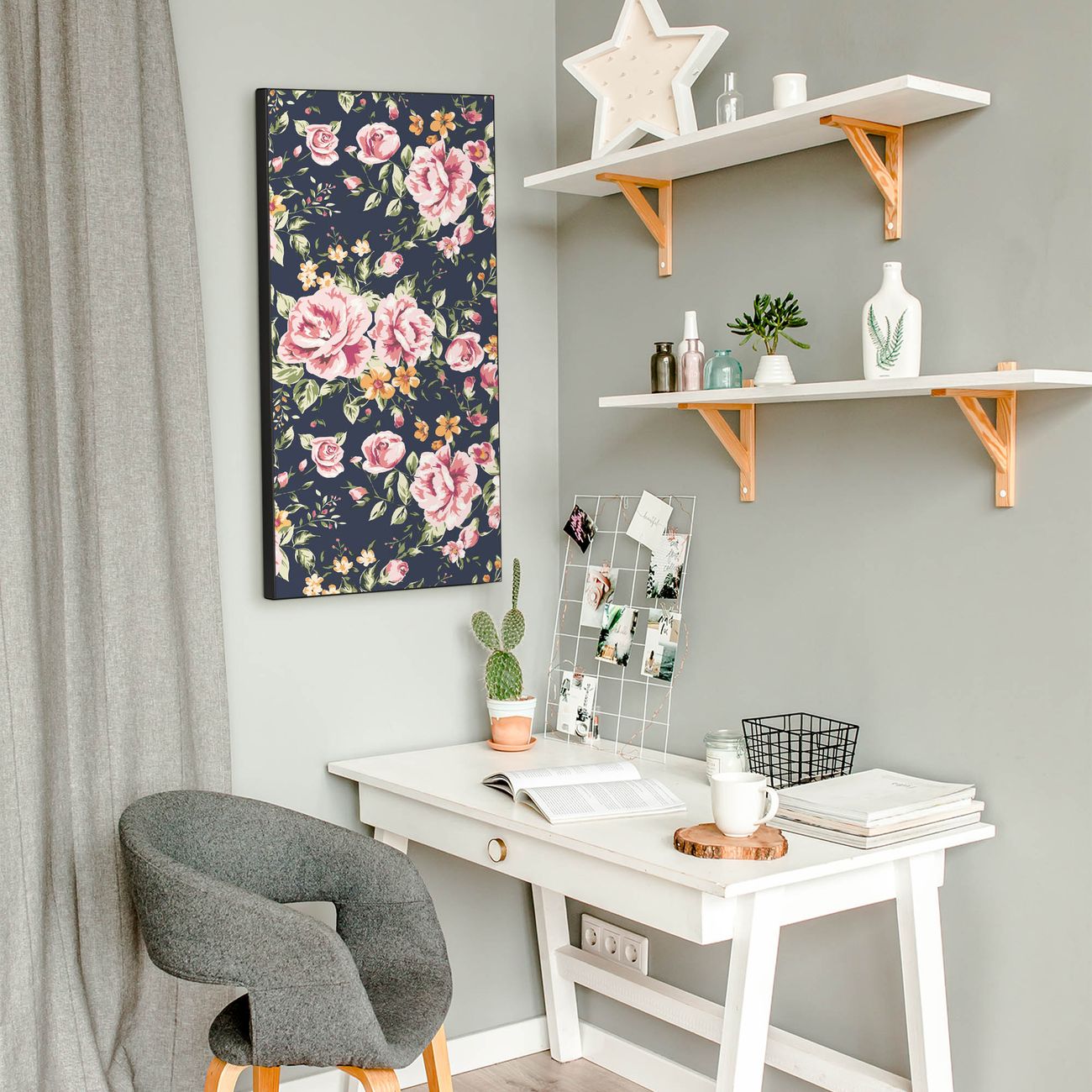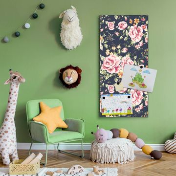 FUNKTION:  Die banjado Magnettafel mit Motiv Rosen Auf Anthrazit Motiv bringt Ordnung in Ihr Zettelchaos. Fotos, Termine, Notizen oder Rezepte lassen Sich hier stilvoll mit Magneten ordnen, Sie behalten alles im Blick. An der Design Magnettafel halten alle handesüblichen Magnete. DESIGN:  Die magnetische Pinnwand mit dem Motiv Motiv Rosen Auf Anthrazit ist ein eleganter Begleiter im Alltag. Mit dieser Memotafel aus Metall haben Sie auch ohne Notizen und Magnete ein schönes Dekoelement. Das Format bietet Ihnen ausreichend Platz um alle wichtigen Informationen im Blick zu behalten. DETAILS:  Die Magnettafel besteht aus silber-grau, weiß oder schwarzlackiertem Stahl. Sie hat eine Größe von 37 x 78 x 2cm. Es befinden sich auf der Rückseite vorgefertigte Aufhängungen die eine schnelle und unkomplizierte Anbringung ermöglichen. Das Motiv ist mit einem seidenmatten Laminat versehen und schützt so zusätzlich vor Kratzern. NUTZEN:  Sie können dieses Memoboard groß als Wandbild nutzen, es halten alle handelsüblichen Magneten daran. Die Pinnwand ist mit einem feuchten Lappen oder Schwamm abwischbar. Sie finden bei uns eine große Auswahl an passenden Magneten. BANJADO:  Wir sind ein kleines Team aus dem Herzen von Sachsen. Wir fertigen alle Artikel von Hand für Sie an, Sie erhalten keine preiswerte Importware. Auf Wunsch können Sie auch Ihr eigenes Foto auf die Magnettafel aufbringen, schreiben Sie uns an. Herzlichst, Ihr banjado-Team