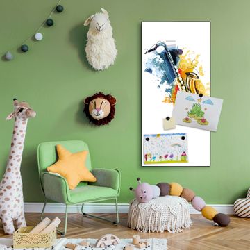 FUNKTION:  Die banjado Magnettafel mit Motiv Saxophon Motiv bringt Ordnung in Ihr Zettelchaos. Fotos, Termine, Notizen oder Rezepte lassen Sich hier stilvoll mit Magneten ordnen, Sie behalten alles im Blick. An der Design Magnettafel halten alle handesüblichen Magnete. DESIGN:  Die magnetische Pinnwand mit dem Motiv Motiv Saxophon ist ein eleganter Begleiter im Alltag. Mit dieser Memotafel aus Metall haben Sie auch ohne Notizen und Magnete ein schönes Dekoelement. Das Format bietet Ihnen ausreichend Platz um alle wichtigen Informationen im Blick zu behalten. DETAILS:  Die Magnettafel besteht aus silber-grau, weiß oder schwarzlackiertem Stahl. Sie hat eine Größe von 37 x 78 x 2cm. Es befinden sich auf der Rückseite vorgefertigte Aufhängungen die eine schnelle und unkomplizierte Anbringung ermöglichen. Das Motiv ist mit einem seidenmatten Laminat versehen und schützt so zusätzlich vor Kratzern. NUTZEN:  Sie können dieses Memoboard groß als Wandbild nutzen, es halten alle handelsüblichen Magneten daran. Die Pinnwand ist mit einem feuchten Lappen oder Schwamm abwischbar. Sie finden bei uns eine große Auswahl an passenden Magneten. BANJADO:  Wir sind ein kleines Team aus dem Herzen von Sachsen. Wir fertigen alle Artikel von Hand für Sie an, Sie erhalten keine preiswerte Importware. Auf Wunsch können Sie auch Ihr eigenes Foto auf die Magnettafel aufbringen, schreiben Sie uns an. Herzlichst, Ihr banjado-Team