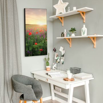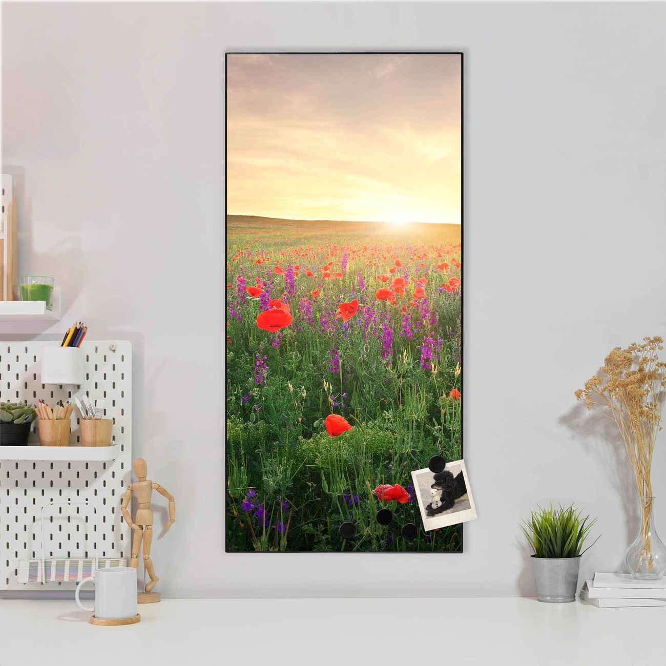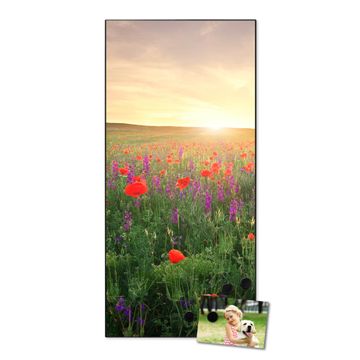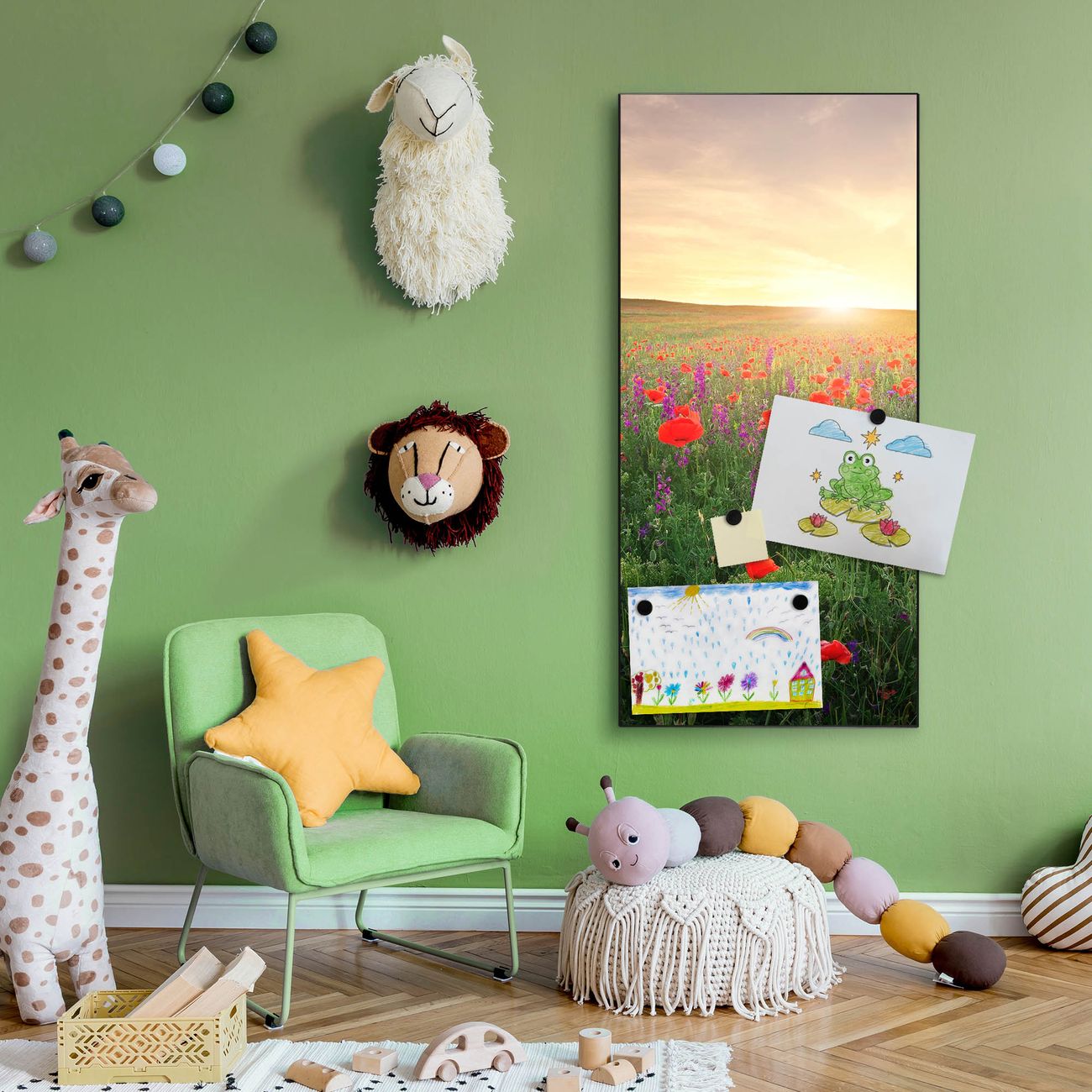 FUNKTION:  Die banjado Magnettafel mit Motiv Sommerfeld Motiv bringt Ordnung in Ihr Zettelchaos. Fotos, Termine, Notizen oder Rezepte lassen Sich hier stilvoll mit Magneten ordnen, Sie behalten alles im Blick. An der Design Magnettafel halten alle handesüblichen Magnete. DESIGN:  Die magnetische Pinnwand mit dem Motiv Motiv Sommerfeld ist ein eleganter Begleiter im Alltag. Mit dieser Memotafel aus Metall haben Sie auch ohne Notizen und Magnete ein schönes Dekoelement. Das Format bietet Ihnen ausreichend Platz um alle wichtigen Informationen im Blick zu behalten. DETAILS:  Die Magnettafel besteht aus silber-grau, weiß oder schwarzlackiertem Stahl. Sie hat eine Größe von 37 x 78 x 2cm. Es befinden sich auf der Rückseite vorgefertigte Aufhängungen die eine schnelle und unkomplizierte Anbringung ermöglichen. Das Motiv ist mit einem seidenmatten Laminat versehen und schützt so zusätzlich vor Kratzern. NUTZEN:  Sie können dieses Memoboard groß als Wandbild nutzen, es halten alle handelsüblichen Magneten daran. Die Pinnwand ist mit einem feuchten Lappen oder Schwamm abwischbar. Sie finden bei uns eine große Auswahl an passenden Magneten. BANJADO:  Wir sind ein kleines Team aus dem Herzen von Sachsen. Wir fertigen alle Artikel von Hand für Sie an, Sie erhalten keine preiswerte Importware. Auf Wunsch können Sie auch Ihr eigenes Foto auf die Magnettafel aufbringen, schreiben Sie uns an. Herzlichst, Ihr banjado-Team
