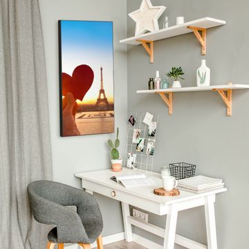 FUNKTION:  Die banjado Magnettafel mit Motiv Stadt Der Liebe Motiv bringt Ordnung in Ihr Zettelchaos. Fotos, Termine, Notizen oder Rezepte lassen Sich hier stilvoll mit Magneten ordnen, Sie behalten alles im Blick. An der Design Magnettafel halten alle handesüblichen Magnete. DESIGN:  Die magnetische Pinnwand mit dem Motiv Motiv Stadt Der Liebe ist ein eleganter Begleiter im Alltag. Mit dieser Memotafel aus Metall haben Sie auch ohne Notizen und Magnete ein schönes Dekoelement. Das Format bietet Ihnen ausreichend Platz um alle wichtigen Informationen im Blick zu behalten. DETAILS:  Die Magnettafel besteht aus silber-grau, weiß oder schwarzlackiertem Stahl. Sie hat eine Größe von 37 x 78 x 2cm. Es befinden sich auf der Rückseite vorgefertigte Aufhängungen die eine schnelle und unkomplizierte Anbringung ermöglichen. Das Motiv ist mit einem seidenmatten Laminat versehen und schützt so zusätzlich vor Kratzern. NUTZEN:  Sie können dieses Memoboard groß als Wandbild nutzen, es halten alle handelsüblichen Magneten daran. Die Pinnwand ist mit einem feuchten Lappen oder Schwamm abwischbar. Sie finden bei uns eine große Auswahl an passenden Magneten. BANJADO:  Wir sind ein kleines Team aus dem Herzen von Sachsen. Wir fertigen alle Artikel von Hand für Sie an, Sie erhalten keine preiswerte Importware. Auf Wunsch können Sie auch Ihr eigenes Foto auf die Magnettafel aufbringen, schreiben Sie uns an. Herzlichst, Ihr banjado-Team