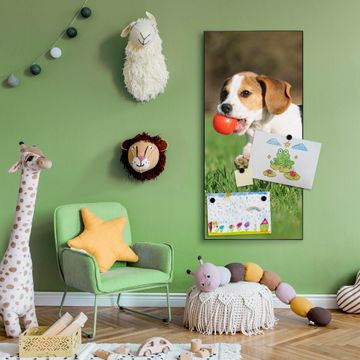 FUNKTION:  Die banjado Magnettafel mit Motiv Trixi Motiv bringt Ordnung in Ihr Zettelchaos. Fotos, Termine, Notizen oder Rezepte lassen Sich hier stilvoll mit Magneten ordnen, Sie behalten alles im Blick. An der Design Magnettafel halten alle handesüblichen Magnete. DESIGN:  Die magnetische Pinnwand mit dem Motiv Motiv Trixi ist ein eleganter Begleiter im Alltag. Mit dieser Memotafel aus Metall haben Sie auch ohne Notizen und Magnete ein schönes Dekoelement. Das Format bietet Ihnen ausreichend Platz um alle wichtigen Informationen im Blick zu behalten. DETAILS:  Die Magnettafel besteht aus silber-grau, weiß oder schwarzlackiertem Stahl. Sie hat eine Größe von 37 x 78 x 2cm. Es befinden sich auf der Rückseite vorgefertigte Aufhängungen die eine schnelle und unkomplizierte Anbringung ermöglichen. Das Motiv ist mit einem seidenmatten Laminat versehen und schützt so zusätzlich vor Kratzern. NUTZEN:  Sie können dieses Memoboard groß als Wandbild nutzen, es halten alle handelsüblichen Magneten daran. Die Pinnwand ist mit einem feuchten Lappen oder Schwamm abwischbar. Sie finden bei uns eine große Auswahl an passenden Magneten. BANJADO:  Wir sind ein kleines Team aus dem Herzen von Sachsen. Wir fertigen alle Artikel von Hand für Sie an, Sie erhalten keine preiswerte Importware. Auf Wunsch können Sie auch Ihr eigenes Foto auf die Magnettafel aufbringen, schreiben Sie uns an. Herzlichst, Ihr banjado-Team