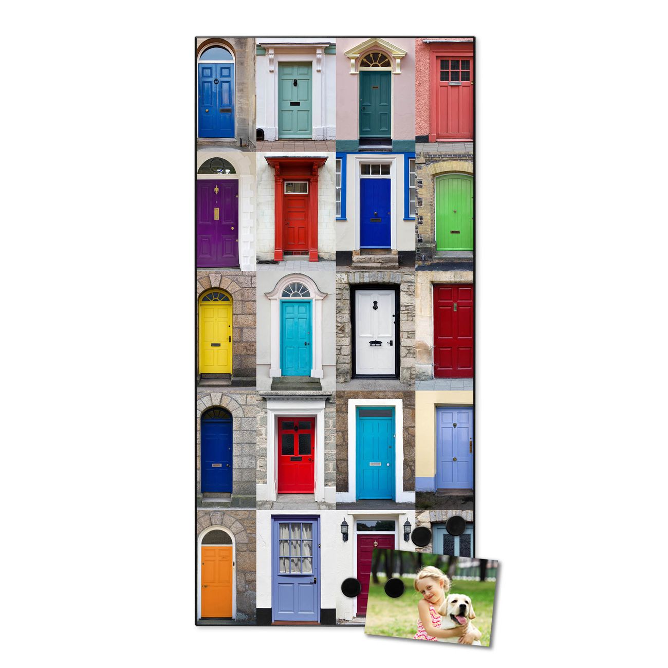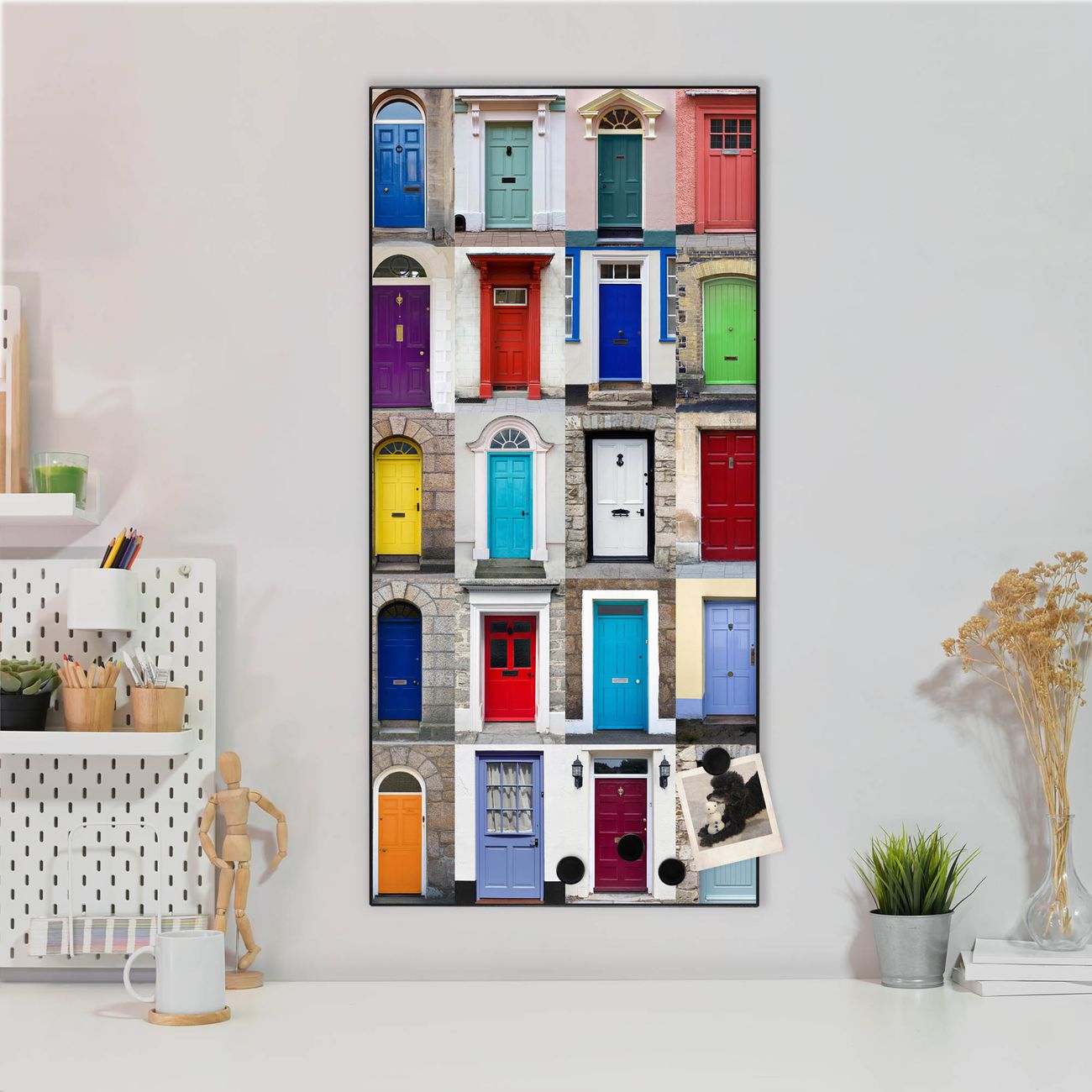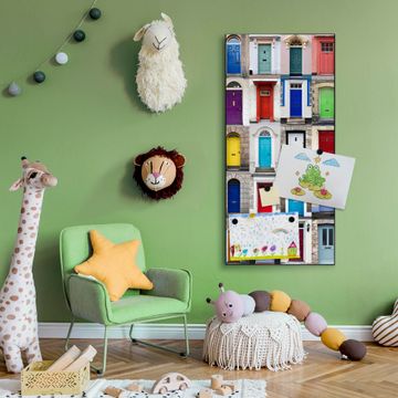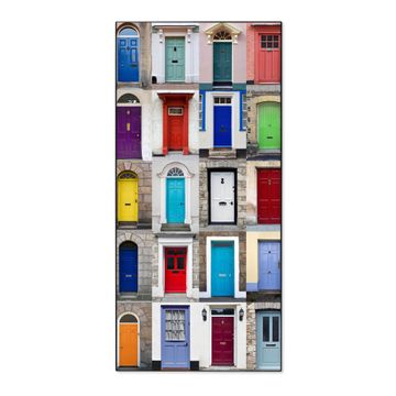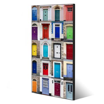 FUNKTION:  Die banjado Magnettafel mit Motiv Türen Motiv bringt Ordnung in Ihr Zettelchaos. Fotos, Termine, Notizen oder Rezepte lassen Sich hier stilvoll mit Magneten ordnen, Sie behalten alles im Blick. An der Design Magnettafel halten alle handesüblichen Magnete. DESIGN:  Die magnetische Pinnwand mit dem Motiv Motiv Türen ist ein eleganter Begleiter im Alltag. Mit dieser Memotafel aus Metall haben Sie auch ohne Notizen und Magnete ein schönes Dekoelement. Das Format bietet Ihnen ausreichend Platz um alle wichtigen Informationen im Blick zu behalten. DETAILS:  Die Magnettafel besteht aus silber-grau, weiß oder schwarzlackiertem Stahl. Sie hat eine Größe von 37 x 78 x 2cm. Es befinden sich auf der Rückseite vorgefertigte Aufhängungen die eine schnelle und unkomplizierte Anbringung ermöglichen. Das Motiv ist mit einem seidenmatten Laminat versehen und schützt so zusätzlich vor Kratzern. NUTZEN:  Sie können dieses Memoboard groß als Wandbild nutzen, es halten alle handelsüblichen Magneten daran. Die Pinnwand ist mit einem feuchten Lappen oder Schwamm abwischbar. Sie finden bei uns eine große Auswahl an passenden Magneten. BANJADO:  Wir sind ein kleines Team aus dem Herzen von Sachsen. Wir fertigen alle Artikel von Hand für Sie an, Sie erhalten keine preiswerte Importware. Auf Wunsch können Sie auch Ihr eigenes Foto auf die Magnettafel aufbringen, schreiben Sie uns an. Herzlichst, Ihr banjado-Team