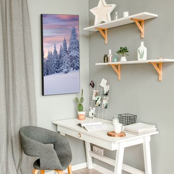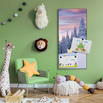 FUNKTION:  Die banjado Magnettafel mit Motiv Verschneite Berge Motiv bringt Ordnung in Ihr Zettelchaos. Fotos, Termine, Notizen oder Rezepte lassen Sich hier stilvoll mit Magneten ordnen, Sie behalten alles im Blick. An der Design Magnettafel halten alle handesüblichen Magnete. DESIGN:  Die magnetische Pinnwand mit dem Motiv Motiv Verschneite Berge ist ein eleganter Begleiter im Alltag. Mit dieser Memotafel aus Metall haben Sie auch ohne Notizen und Magnete ein schönes Dekoelement. Das Format bietet Ihnen ausreichend Platz um alle wichtigen Informationen im Blick zu behalten. DETAILS:  Die Magnettafel besteht aus silber-grau, weiß oder schwarzlackiertem Stahl. Sie hat eine Größe von 37 x 78 x 2cm. Es befinden sich auf der Rückseite vorgefertigte Aufhängungen die eine schnelle und unkomplizierte Anbringung ermöglichen. Das Motiv ist mit einem seidenmatten Laminat versehen und schützt so zusätzlich vor Kratzern. NUTZEN:  Sie können dieses Memoboard groß als Wandbild nutzen, es halten alle handelsüblichen Magneten daran. Die Pinnwand ist mit einem feuchten Lappen oder Schwamm abwischbar. Sie finden bei uns eine große Auswahl an passenden Magneten. BANJADO:  Wir sind ein kleines Team aus dem Herzen von Sachsen. Wir fertigen alle Artikel von Hand für Sie an, Sie erhalten keine preiswerte Importware. Auf Wunsch können Sie auch Ihr eigenes Foto auf die Magnettafel aufbringen, schreiben Sie uns an. Herzlichst, Ihr banjado-Team