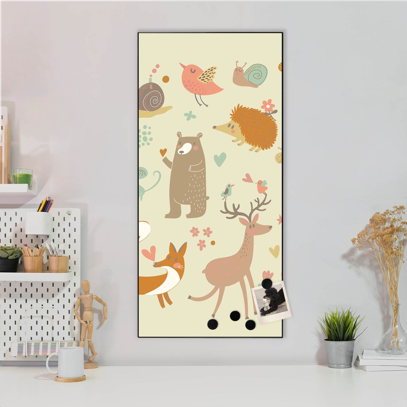 Stahl Magnettafel Hochformat 78x37cm Waldtiere