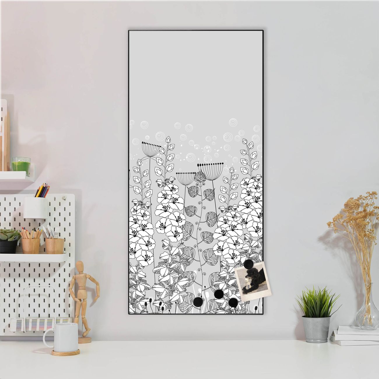 FUNKTION:  Die banjado Magnettafel mit Motiv Wegesrand Motiv bringt Ordnung in Ihr Zettelchaos. Fotos, Termine, Notizen oder Rezepte lassen Sich hier stilvoll mit Magneten ordnen, Sie behalten alles im Blick. An der Design Magnettafel halten alle handesüblichen Magnete. DESIGN:  Die magnetische Pinnwand mit dem Motiv Motiv Wegesrand ist ein eleganter Begleiter im Alltag. Mit dieser Memotafel aus Metall haben Sie auch ohne Notizen und Magnete ein schönes Dekoelement. Das Format bietet Ihnen ausreichend Platz um alle wichtigen Informationen im Blick zu behalten. DETAILS:  Die Magnettafel besteht aus silber-grau, weiß oder schwarzlackiertem Stahl. Sie hat eine Größe von 37 x 78 x 2cm. Es befinden sich auf der Rückseite vorgefertigte Aufhängungen die eine schnelle und unkomplizierte Anbringung ermöglichen. Das Motiv ist mit einem seidenmatten Laminat versehen und schützt so zusätzlich vor Kratzern. NUTZEN:  Sie können dieses Memoboard groß als Wandbild nutzen, es halten alle handelsüblichen Magneten daran. Die Pinnwand ist mit einem feuchten Lappen oder Schwamm abwischbar. Sie finden bei uns eine große Auswahl an passenden Magneten. BANJADO:  Wir sind ein kleines Team aus dem Herzen von Sachsen. Wir fertigen alle Artikel von Hand für Sie an, Sie erhalten keine preiswerte Importware. Auf Wunsch können Sie auch Ihr eigenes Foto auf die Magnettafel aufbringen, schreiben Sie uns an. Herzlichst, Ihr banjado-Team