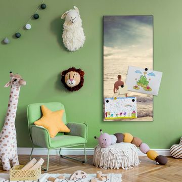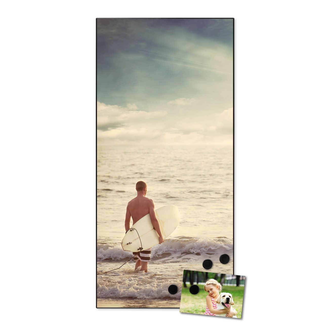 FUNKTION:  Die banjado Magnettafel mit Motiv Wellenreiten Gehen 2 Motiv bringt Ordnung in Ihr Zettelchaos. Fotos, Termine, Notizen oder Rezepte lassen Sich hier stilvoll mit Magneten ordnen, Sie behalten alles im Blick. An der Design Magnettafel halten alle handesüblichen Magnete. DESIGN:  Die magnetische Pinnwand mit dem Motiv Motiv Wellenreiten Gehen 2 ist ein eleganter Begleiter im Alltag. Mit dieser Memotafel aus Metall haben Sie auch ohne Notizen und Magnete ein schönes Dekoelement. Das Format bietet Ihnen ausreichend Platz um alle wichtigen Informationen im Blick zu behalten. DETAILS:  Die Magnettafel besteht aus silber-grau, weiß oder schwarzlackiertem Stahl. Sie hat eine Größe von 37 x 78 x 2cm. Es befinden sich auf der Rückseite vorgefertigte Aufhängungen die eine schnelle und unkomplizierte Anbringung ermöglichen. Das Motiv ist mit einem seidenmatten Laminat versehen und schützt so zusätzlich vor Kratzern. NUTZEN:  Sie können dieses Memoboard groß als Wandbild nutzen, es halten alle handelsüblichen Magneten daran. Die Pinnwand ist mit einem feuchten Lappen oder Schwamm abwischbar. Sie finden bei uns eine große Auswahl an passenden Magneten. BANJADO:  Wir sind ein kleines Team aus dem Herzen von Sachsen. Wir fertigen alle Artikel von Hand für Sie an, Sie erhalten keine preiswerte Importware. Auf Wunsch können Sie auch Ihr eigenes Foto auf die Magnettafel aufbringen, schreiben Sie uns an. Herzlichst, Ihr banjado-Team