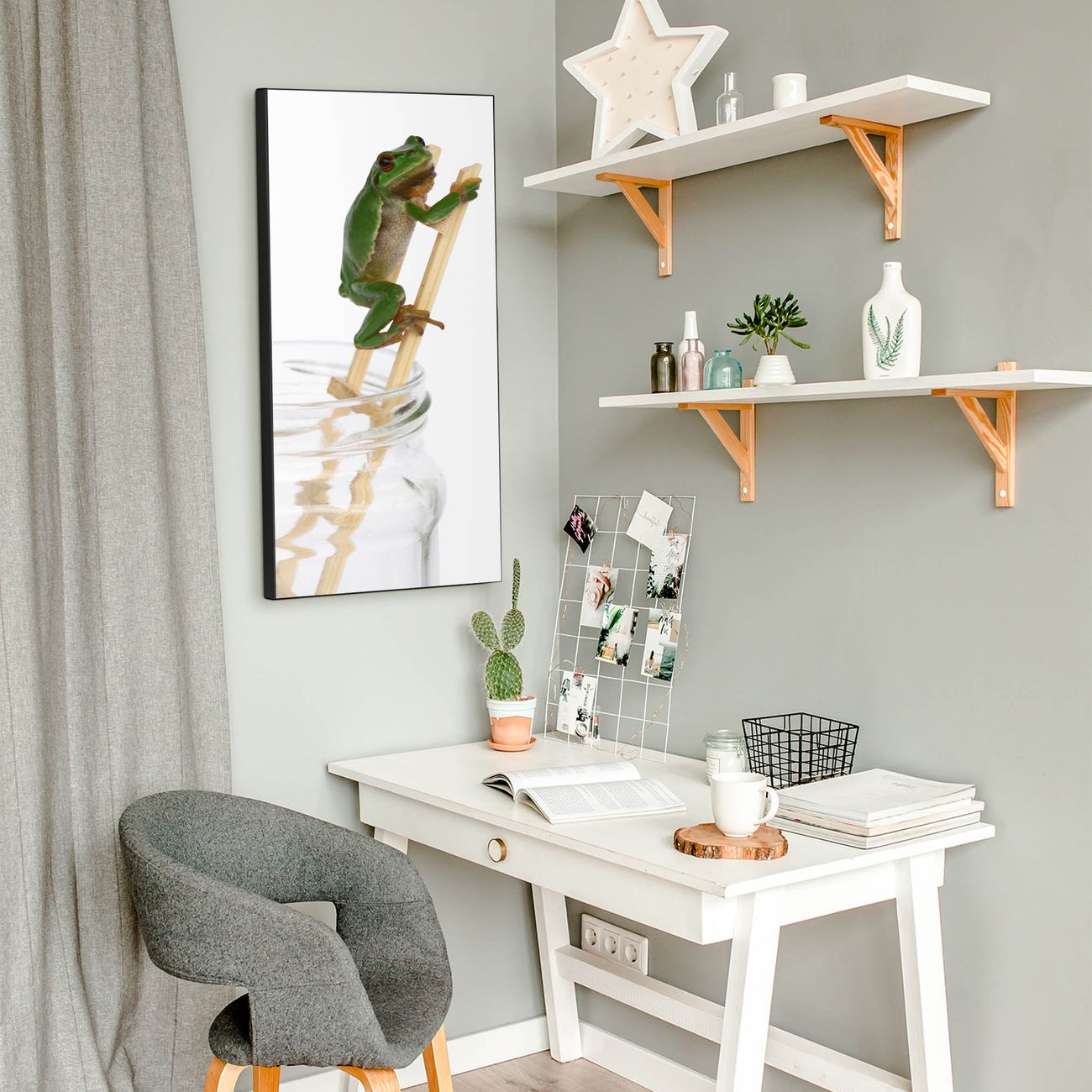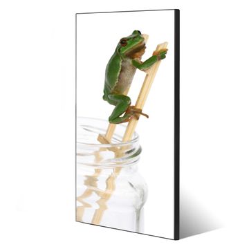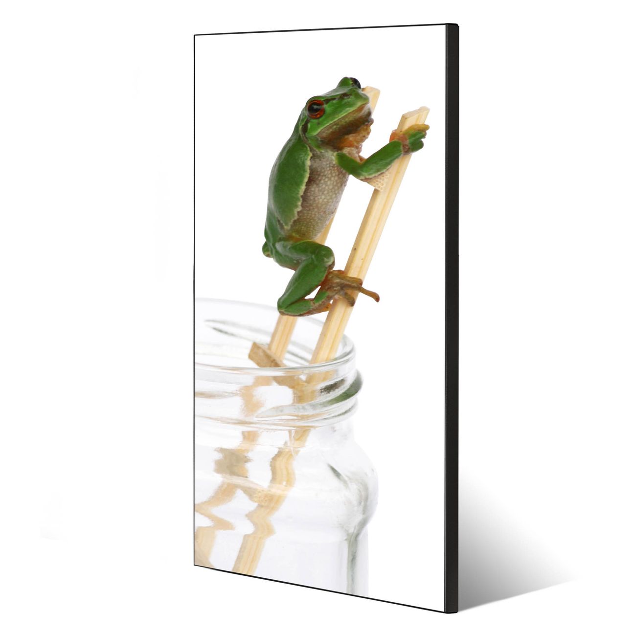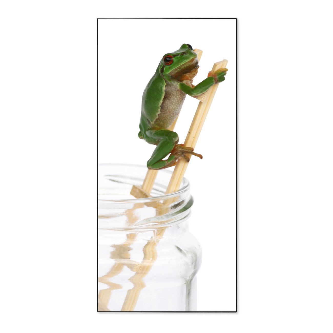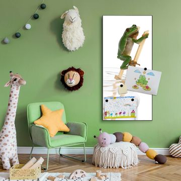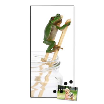 FUNKTION:  Die banjado Magnettafel mit Motiv Wetterfrosch Motiv bringt Ordnung in Ihr Zettelchaos. Fotos, Termine, Notizen oder Rezepte lassen Sich hier stilvoll mit Magneten ordnen, Sie behalten alles im Blick. An der Design Magnettafel halten alle handesüblichen Magnete. DESIGN:  Die magnetische Pinnwand mit dem Motiv Motiv Wetterfrosch ist ein eleganter Begleiter im Alltag. Mit dieser Memotafel aus Metall haben Sie auch ohne Notizen und Magnete ein schönes Dekoelement. Das Format bietet Ihnen ausreichend Platz um alle wichtigen Informationen im Blick zu behalten. DETAILS:  Die Magnettafel besteht aus silber-grau, weiß oder schwarzlackiertem Stahl. Sie hat eine Größe von 37 x 78 x 2cm. Es befinden sich auf der Rückseite vorgefertigte Aufhängungen die eine schnelle und unkomplizierte Anbringung ermöglichen. Das Motiv ist mit einem seidenmatten Laminat versehen und schützt so zusätzlich vor Kratzern. NUTZEN:  Sie können dieses Memoboard groß als Wandbild nutzen, es halten alle handelsüblichen Magneten daran. Die Pinnwand ist mit einem feuchten Lappen oder Schwamm abwischbar. Sie finden bei uns eine große Auswahl an passenden Magneten. BANJADO:  Wir sind ein kleines Team aus dem Herzen von Sachsen. Wir fertigen alle Artikel von Hand für Sie an, Sie erhalten keine preiswerte Importware. Auf Wunsch können Sie auch Ihr eigenes Foto auf die Magnettafel aufbringen, schreiben Sie uns an. Herzlichst, Ihr banjado-Team