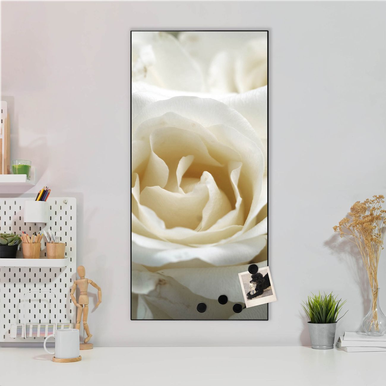 Stahl Magnettafel Hochformat 78x37cm White Roses