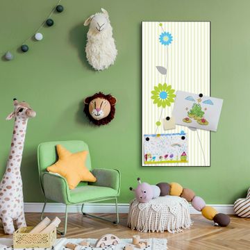 FUNKTION:  Die banjado Magnettafel mit Motiv Zarte Blumen Motiv bringt Ordnung in Ihr Zettelchaos. Fotos, Termine, Notizen oder Rezepte lassen Sich hier stilvoll mit Magneten ordnen, Sie behalten alles im Blick. An der Design Magnettafel halten alle handesüblichen Magnete. DESIGN:  Die magnetische Pinnwand mit dem Motiv Motiv Zarte Blumen ist ein eleganter Begleiter im Alltag. Mit dieser Memotafel aus Metall haben Sie auch ohne Notizen und Magnete ein schönes Dekoelement. Das Format bietet Ihnen ausreichend Platz um alle wichtigen Informationen im Blick zu behalten. DETAILS:  Die Magnettafel besteht aus silber-grau, weiß oder schwarzlackiertem Stahl. Sie hat eine Größe von 37 x 78 x 2cm. Es befinden sich auf der Rückseite vorgefertigte Aufhängungen die eine schnelle und unkomplizierte Anbringung ermöglichen. Das Motiv ist mit einem seidenmatten Laminat versehen und schützt so zusätzlich vor Kratzern. NUTZEN:  Sie können dieses Memoboard groß als Wandbild nutzen, es halten alle handelsüblichen Magneten daran. Die Pinnwand ist mit einem feuchten Lappen oder Schwamm abwischbar. Sie finden bei uns eine große Auswahl an passenden Magneten. BANJADO:  Wir sind ein kleines Team aus dem Herzen von Sachsen. Wir fertigen alle Artikel von Hand für Sie an, Sie erhalten keine preiswerte Importware. Auf Wunsch können Sie auch Ihr eigenes Foto auf die Magnettafel aufbringen, schreiben Sie uns an. Herzlichst, Ihr banjado-Team