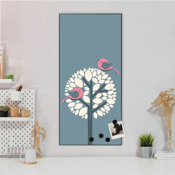 Stahl Magnettafel Hochformat 78x37cm Zwei Rosa Vögel