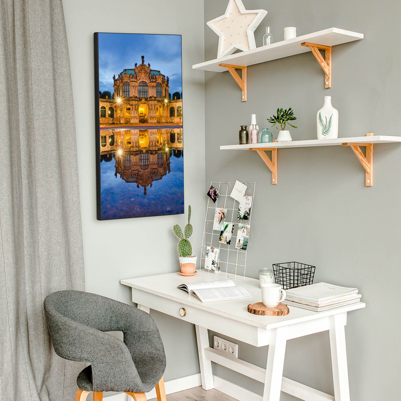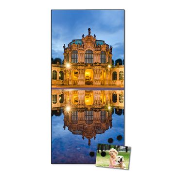 FUNKTION:  Die banjado Magnettafel mit Motiv Zwinger Dresden Motiv bringt Ordnung in Ihr Zettelchaos. Fotos, Termine, Notizen oder Rezepte lassen Sich hier stilvoll mit Magneten ordnen, Sie behalten alles im Blick. An der Design Magnettafel halten alle handesüblichen Magnete. DESIGN:  Die magnetische Pinnwand mit dem Motiv Motiv Zwinger Dresden ist ein eleganter Begleiter im Alltag. Mit dieser Memotafel aus Metall haben Sie auch ohne Notizen und Magnete ein schönes Dekoelement. Das Format bietet Ihnen ausreichend Platz um alle wichtigen Informationen im Blick zu behalten. DETAILS:  Die Magnettafel besteht aus silber-grau, weiß oder schwarzlackiertem Stahl. Sie hat eine Größe von 37 x 78 x 2cm. Es befinden sich auf der Rückseite vorgefertigte Aufhängungen die eine schnelle und unkomplizierte Anbringung ermöglichen. Das Motiv ist mit einem seidenmatten Laminat versehen und schützt so zusätzlich vor Kratzern. NUTZEN:  Sie können dieses Memoboard groß als Wandbild nutzen, es halten alle handelsüblichen Magneten daran. Die Pinnwand ist mit einem feuchten Lappen oder Schwamm abwischbar. Sie finden bei uns eine große Auswahl an passenden Magneten. BANJADO:  Wir sind ein kleines Team aus dem Herzen von Sachsen. Wir fertigen alle Artikel von Hand für Sie an, Sie erhalten keine preiswerte Importware. Auf Wunsch können Sie auch Ihr eigenes Foto auf die Magnettafel aufbringen, schreiben Sie uns an. Herzlichst, Ihr banjado-Team