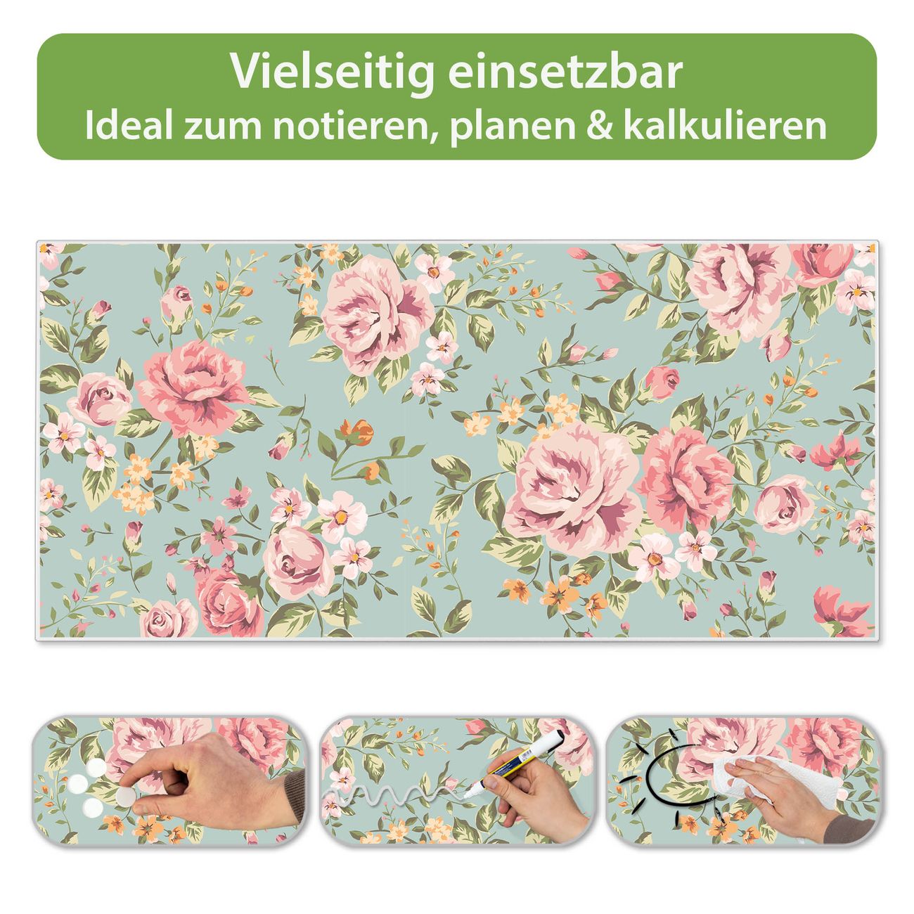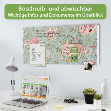 FUNKTION: Die banjado Magnettafel 78x37 cm im Design Motiv Altrosa Blume vereint Funktionalität und modernes Wohndesign auf stilvolle Weise. Diese hochwertige Magnetwand aus Metall hilft Ihnen dabei, Notizen, Fotos, Termine, Einkaufslisten oder Rezepte übersichtlich zu organisieren. Als praktisches Memoboard sorgt sie für Struktur im Alltag und setzt gleichzeitig einen dekorativen Akzent an Ihrer Wand. DESIGN: Die Metalltafel besteht aus robustem, lackiertem Stahl und ist mit allen handelsüblichen Magneten nutzbar. Besonders praktisch ist die beschreibbare Oberfläche. Sie können die Magnettafel ganz einfach mit Kreidestiften beschriften und die Inhalte bei Bedarf mit einem feuchten Tuch wieder entfernen. So eignet sich das Memoboard ideal für Wochenpläne, Menüpläne, To Do Listen oder kreative Botschaften. DETAILS: Mit ihrem großzügigen Querformat von 78x37 cm bietet die Magnettafel ausreichend Platz für Ihre Organisation. Das Motiv Motiv Altrosa Blume bringt eine warme, natürliche Optik in Küche, Flur, Büro oder Homeoffice und wirkt auch ohne Magnete oder Beschriftung wie ein modernes Wandbild. NUTZEN: Auf der Rückseite befinden sich vorgefertigte Löcher für eine schnelle und unkomplizierte Wandmontage. Jede banjado Magnettafel wird in Deutschland gefertigt und steht für Qualität, Langlebigkeit und liebevolle Verarbeitung. Dieses beschreibbare Memoboard ist die perfekte Kombination aus Metalltafel, Designobjekt und praktischer Magnetwand für Ihren Alltag. BANJADO: Wir sind ein kleines Team aus dem Herzen von Sachsen. Wir fertigen alle Artikel von Hand für Sie an, Sie erhalten keine preiswerte Importware. Auf Wunsch können Sie auch Ihr eigenes Foto auf die Magnettafel aufbringen, schreiben Sie uns an. Herzlichst, Ihr banjado-Team