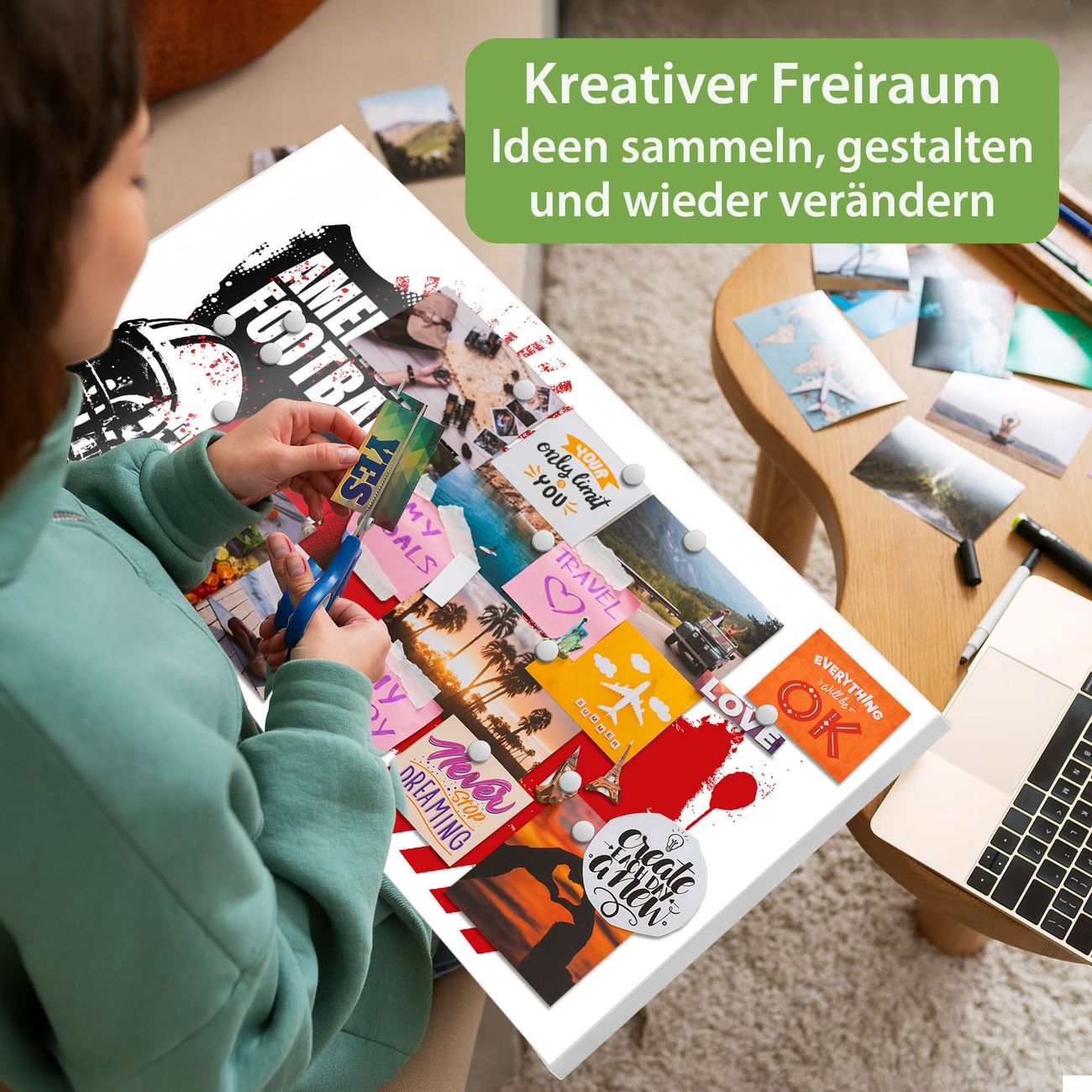 FUNKTION: Die banjado Magnettafel 78x37 cm im Design Motiv American Football vereint Funktionalität und modernes Wohndesign auf stilvolle Weise. Diese hochwertige Magnetwand aus Metall hilft Ihnen dabei, Notizen, Fotos, Termine, Einkaufslisten oder Rezepte übersichtlich zu organisieren. Als praktisches Memoboard sorgt sie für Struktur im Alltag und setzt gleichzeitig einen dekorativen Akzent an Ihrer Wand. DESIGN: Die Metalltafel besteht aus robustem, lackiertem Stahl und ist mit allen handelsüblichen Magneten nutzbar. Besonders praktisch ist die beschreibbare Oberfläche. Sie können die Magnettafel ganz einfach mit Kreidestiften beschriften und die Inhalte bei Bedarf mit einem feuchten Tuch wieder entfernen. So eignet sich das Memoboard ideal für Wochenpläne, Menüpläne, To Do Listen oder kreative Botschaften. DETAILS: Mit ihrem großzügigen Querformat von 78x37 cm bietet die Magnettafel ausreichend Platz für Ihre Organisation. Das Motiv Motiv American Football bringt eine warme, natürliche Optik in Küche, Flur, Büro oder Homeoffice und wirkt auch ohne Magnete oder Beschriftung wie ein modernes Wandbild. NUTZEN: Auf der Rückseite befinden sich vorgefertigte Löcher für eine schnelle und unkomplizierte Wandmontage. Jede banjado Magnettafel wird in Deutschland gefertigt und steht für Qualität, Langlebigkeit und liebevolle Verarbeitung. Dieses beschreibbare Memoboard ist die perfekte Kombination aus Metalltafel, Designobjekt und praktischer Magnetwand für Ihren Alltag. BANJADO: Wir sind ein kleines Team aus dem Herzen von Sachsen. Wir fertigen alle Artikel von Hand für Sie an, Sie erhalten keine preiswerte Importware. Auf Wunsch können Sie auch Ihr eigenes Foto auf die Magnettafel aufbringen, schreiben Sie uns an. Herzlichst, Ihr banjado-Team