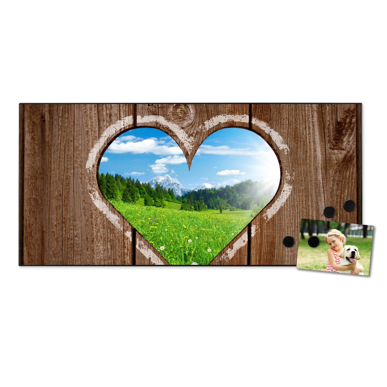 Stahl Magnettafel Querformat 37x78cm Ausblick mit Herz