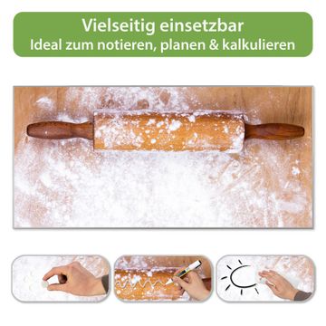 FUNKTION: Die banjado Magnettafel 78x37 cm im Design Motiv Backen vereint Funktionalität und modernes Wohndesign auf stilvolle Weise. Diese hochwertige Magnetwand aus Metall hilft Ihnen dabei, Notizen, Fotos, Termine, Einkaufslisten oder Rezepte übersichtlich zu organisieren. Als praktisches Memoboard sorgt sie für Struktur im Alltag und setzt gleichzeitig einen dekorativen Akzent an Ihrer Wand. DESIGN: Die Metalltafel besteht aus robustem, lackiertem Stahl und ist mit allen handelsüblichen Magneten nutzbar. Besonders praktisch ist die beschreibbare Oberfläche. Sie können die Magnettafel ganz einfach mit Kreidestiften beschriften und die Inhalte bei Bedarf mit einem feuchten Tuch wieder entfernen. So eignet sich das Memoboard ideal für Wochenpläne, Menüpläne, To Do Listen oder kreative Botschaften. DETAILS: Mit ihrem großzügigen Querformat von 78x37 cm bietet die Magnettafel ausreichend Platz für Ihre Organisation. Das Motiv Motiv Backen bringt eine warme, natürliche Optik in Küche, Flur, Büro oder Homeoffice und wirkt auch ohne Magnete oder Beschriftung wie ein modernes Wandbild. NUTZEN: Auf der Rückseite befinden sich vorgefertigte Löcher für eine schnelle und unkomplizierte Wandmontage. Jede banjado Magnettafel wird in Deutschland gefertigt und steht für Qualität, Langlebigkeit und liebevolle Verarbeitung. Dieses beschreibbare Memoboard ist die perfekte Kombination aus Metalltafel, Designobjekt und praktischer Magnetwand für Ihren Alltag. BANJADO: Wir sind ein kleines Team aus dem Herzen von Sachsen. Wir fertigen alle Artikel von Hand für Sie an, Sie erhalten keine preiswerte Importware. Auf Wunsch können Sie auch Ihr eigenes Foto auf die Magnettafel aufbringen, schreiben Sie uns an. Herzlichst, Ihr banjado-Team