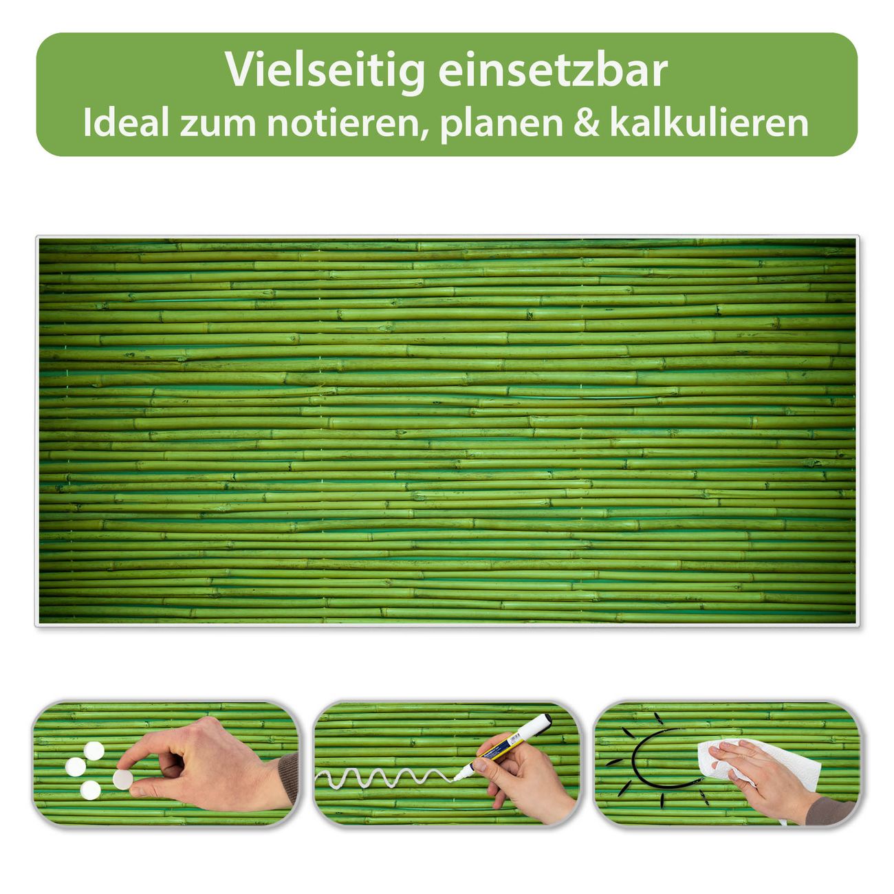 Metall Magnettafel beschreibbar 78x37cm Motiv Bambus Grün