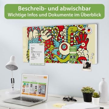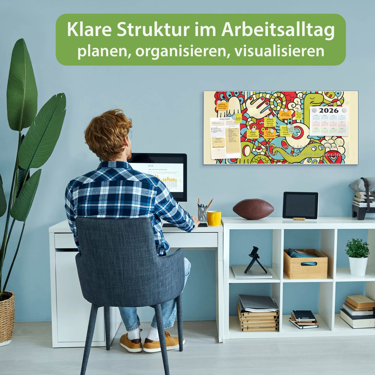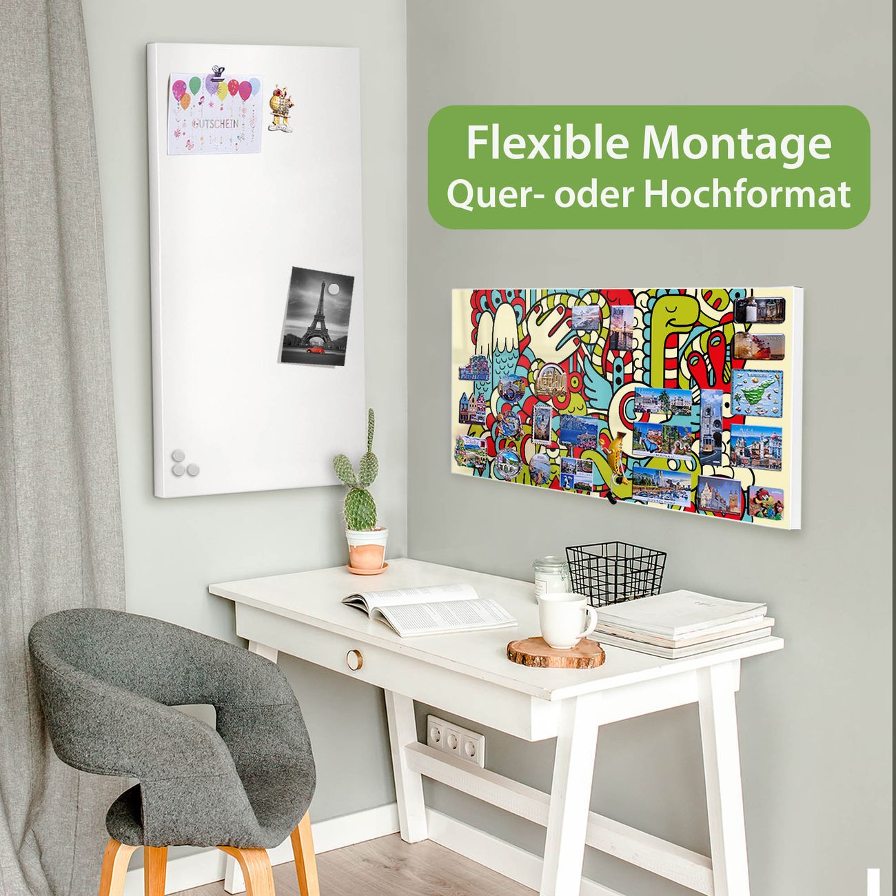 FUNKTION: Die banjado Magnettafel 78x37 cm im Design Motiv Birds Worms Freaks vereint Funktionalität und modernes Wohndesign auf stilvolle Weise. Diese hochwertige Magnetwand aus Metall hilft Ihnen dabei, Notizen, Fotos, Termine, Einkaufslisten oder Rezepte übersichtlich zu organisieren. Als praktisches Memoboard sorgt sie für Struktur im Alltag und setzt gleichzeitig einen dekorativen Akzent an Ihrer Wand. DESIGN: Die Metalltafel besteht aus robustem, lackiertem Stahl und ist mit allen handelsüblichen Magneten nutzbar. Besonders praktisch ist die beschreibbare Oberfläche. Sie können die Magnettafel ganz einfach mit Kreidestiften beschriften und die Inhalte bei Bedarf mit einem feuchten Tuch wieder entfernen. So eignet sich das Memoboard ideal für Wochenpläne, Menüpläne, To Do Listen oder kreative Botschaften. DETAILS: Mit ihrem großzügigen Querformat von 78x37 cm bietet die Magnettafel ausreichend Platz für Ihre Organisation. Das Motiv Motiv Birds Worms Freaks bringt eine warme, natürliche Optik in Küche, Flur, Büro oder Homeoffice und wirkt auch ohne Magnete oder Beschriftung wie ein modernes Wandbild. NUTZEN: Auf der Rückseite befinden sich vorgefertigte Löcher für eine schnelle und unkomplizierte Wandmontage. Jede banjado Magnettafel wird in Deutschland gefertigt und steht für Qualität, Langlebigkeit und liebevolle Verarbeitung. Dieses beschreibbare Memoboard ist die perfekte Kombination aus Metalltafel, Designobjekt und praktischer Magnetwand für Ihren Alltag. BANJADO: Wir sind ein kleines Team aus dem Herzen von Sachsen. Wir fertigen alle Artikel von Hand für Sie an, Sie erhalten keine preiswerte Importware. Auf Wunsch können Sie auch Ihr eigenes Foto auf die Magnettafel aufbringen, schreiben Sie uns an. Herzlichst, Ihr banjado-Team