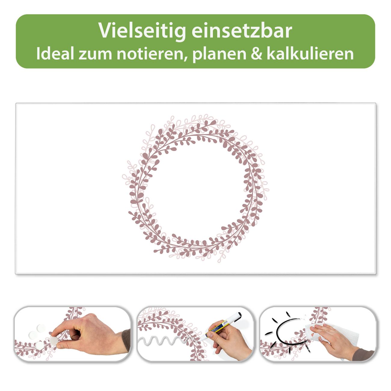 Metall Magnettafel beschreibbar 78x37cm Motiv Blätterkranz