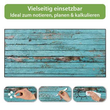 Metall Magnettafel beschreibbar 78x37cm Motiv Blaue Holzlatten