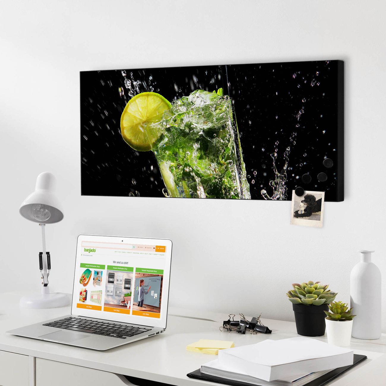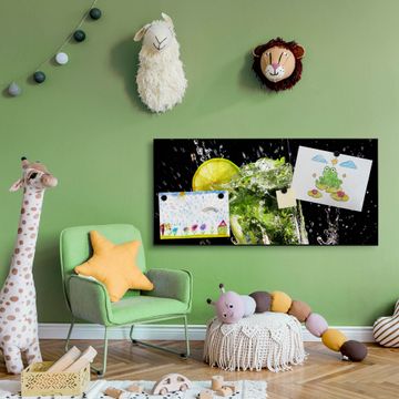 FUNKTION:  Die banjado Magnettafel mit Motiv Brasilianischer Cocktail Motiv bringt Ordnung in Ihr Zettelchaos. Fotos, Termine, Notizen oder Rezepte lassen Sich hier stilvoll mit Magneten ordnen, Sie behalten alles im Blick. An der Design Magnetwand halten alle handesüblichen Magnete. DESIGN:  Die Metall Pinnwand mit dem Motiv Motiv Brasilianischer Cocktail ist ein eleganter Begleiter im Alltag. Mit dieser Magnettafel haben Sie auch ohne Notizen und Magnete ein schönes Dekoelement. Das Format bietet Ihnen ausreichend Platz um alle wichtigen Informationen im Blick zu behalten. DETAILS: Die magnetische Pinnwand besteht aus silber-grau, weiß oder schwarz lackiertem Stahl. Sie hat eine Größe von 78cm x 37cm. Es befinden sich auf der Rückseite vorgefertigte Löcher die eine schnelle und unkomplizierte Anbringung ermöglichen. Das Motiv ist mit einem seidenmatten Laminat versehen und schützt so zusätzlich vor Kratzern. NUTZEN:  Sie können diese Magnettafel wunderbar als Wandbild nutzen, es halten alle handelsüblichen Magneten daran. Das Memoboard ist mit einem feuchten Lappen oder Schwamm abwischbar. Sie finden bei uns eine große Auswahl an passenden Magneten. BANJADO:  Wir sind ein kleines Team aus dem Herzen von Sachsen. Wir fertigen alle Artikel von Hand für Sie an, Sie erhalten keine preiswerte Importware. Auf Wunsch können Sie auch Ihr eigenes Foto auf die Magnettafel aufbringen, schreiben Sie uns an. Herzlichst, Ihr banjado-Team